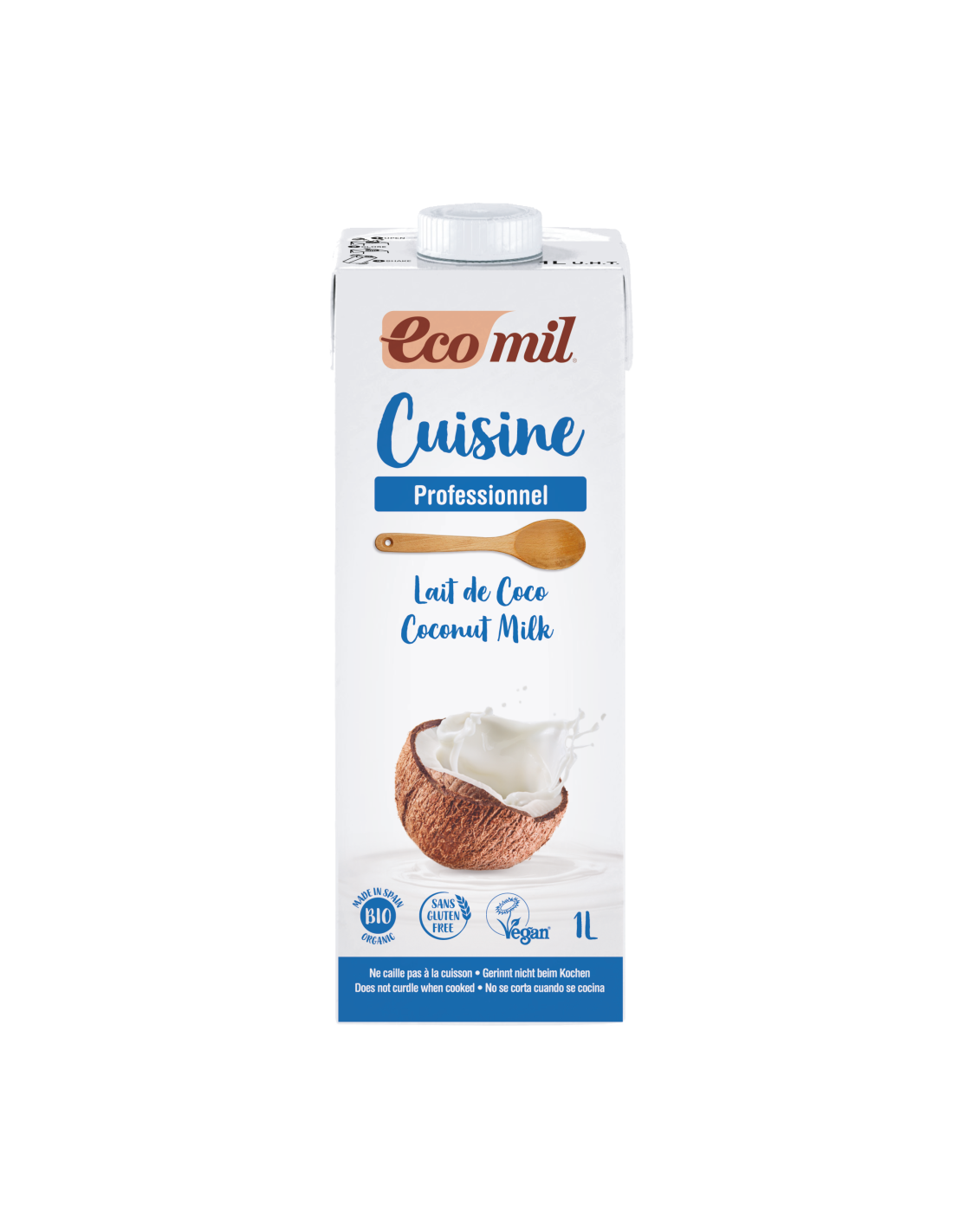 Crema a base de leche de coco bio para cocinar, alternativa a las natas o cremas de soja. Alimento vegano, sin gluten.