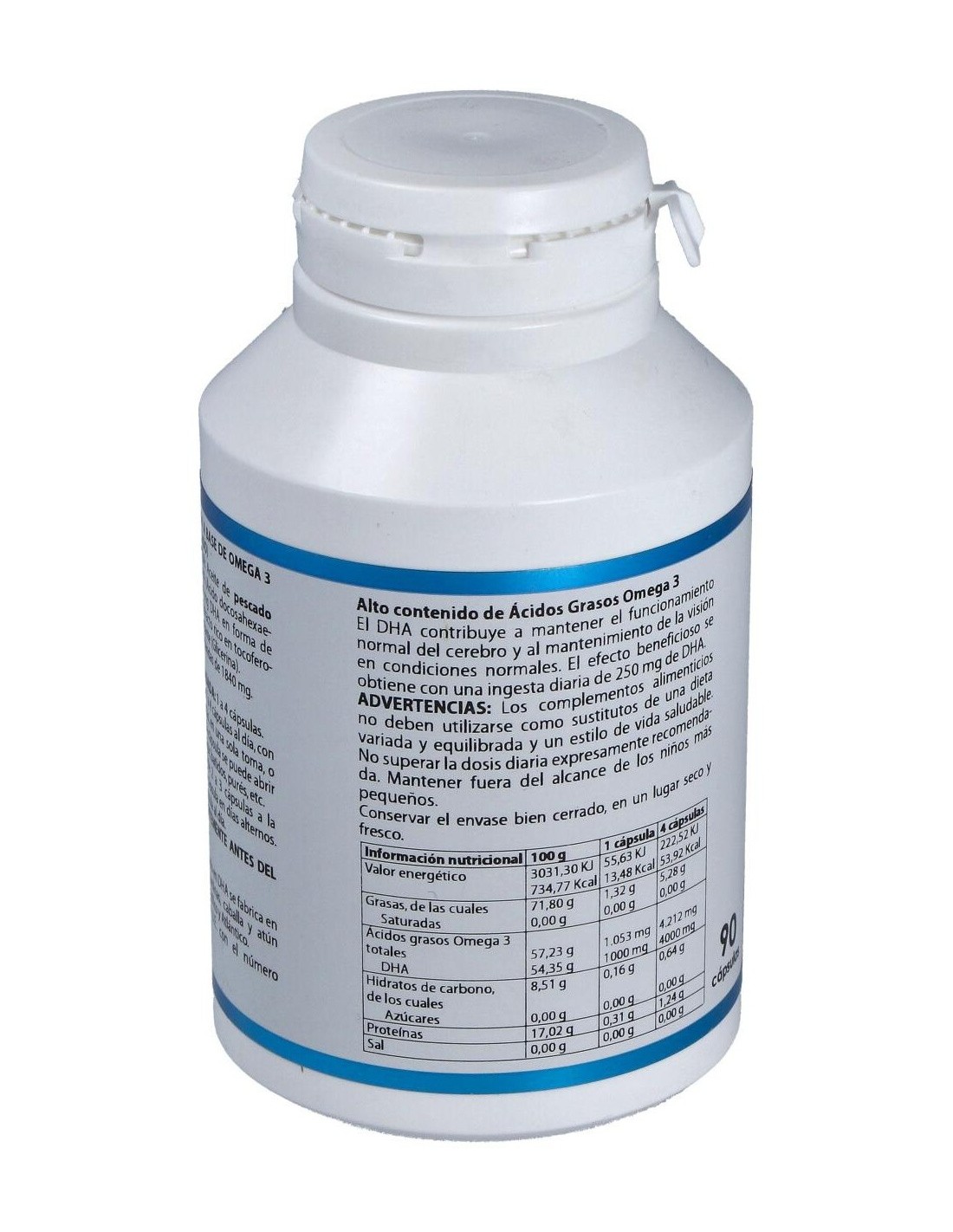Complemento alimenticio a base de omega-3 DHA. El ácido docosahexaenoico (DHA) contribuye a mantener el funcionamiento normal del cerebro y al mantenimiento de la visión en condiciones normales. El efecto beneficioso se obtiene con una ingesta diaria de 250 mg de DHA.