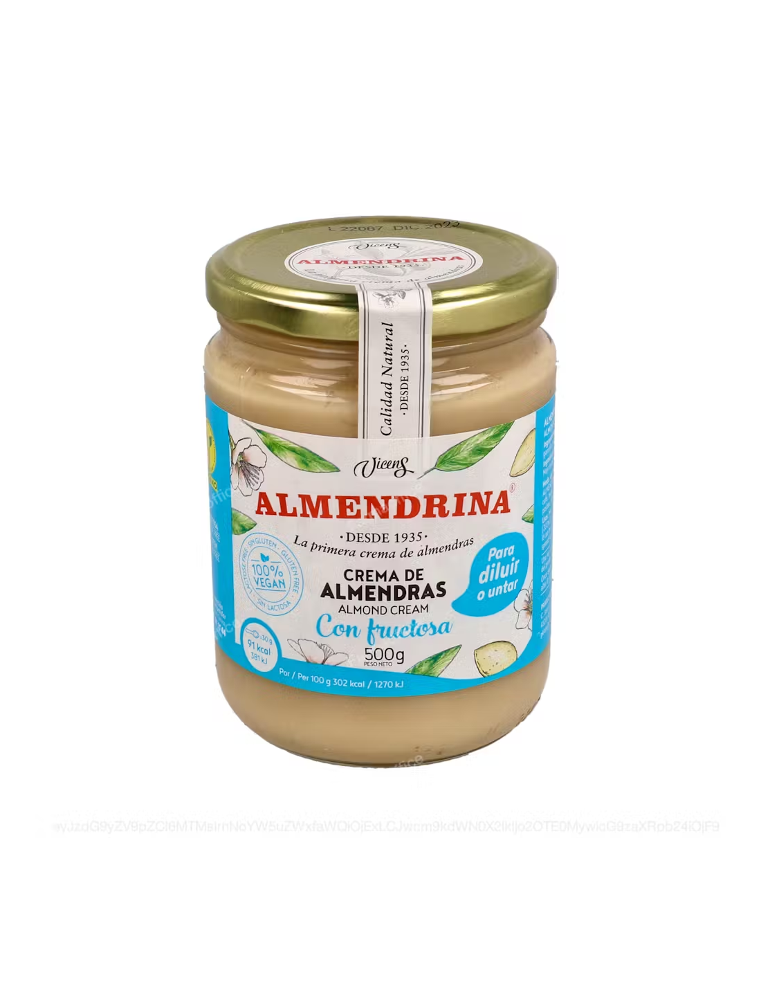 ALMENDRINAVersión de la crema de almendras tradicional Almendrina pero sin azúcar ni glucosa. 100% vegetal y apta para veganos, recomendada para intolerantes a la leche de origen animal y para mejorar las digestiones. La versión con fructosa está especialmente indicada para diabéticos y para personas que siguen dietas sin azúcar y glucosa y para deportistas.