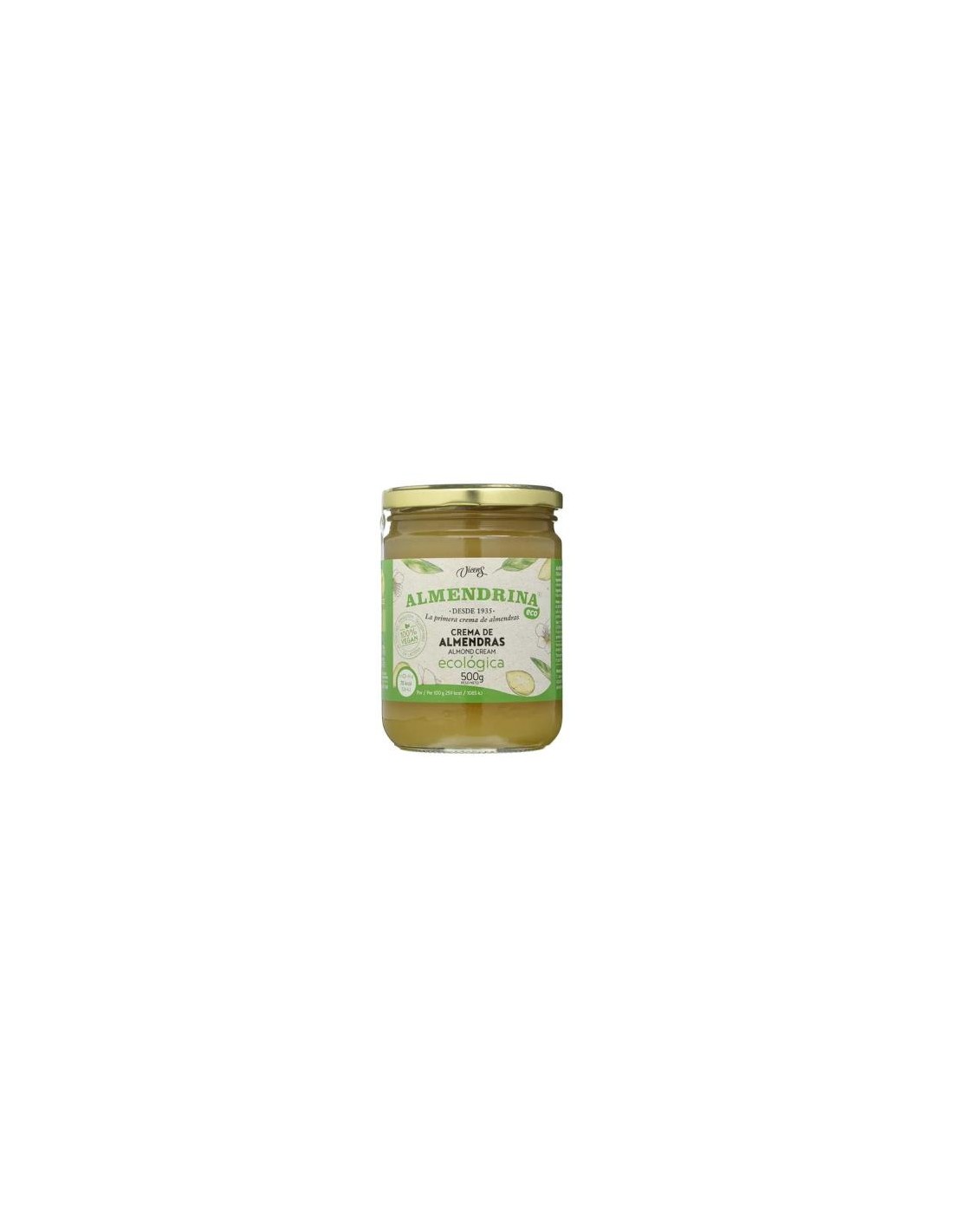 La crema de almendras Almendrina no tiene ningún aditivo, sólo agua, maltosa ecológica y almendras ecológicas. Cuenta con la selección experta de las mejores almendras procedentes de cultivo ecológico (con certificado CCPAE), y el control de todo el proceso de producción. 100% vegetal y apta para veganos, recomendada para intolerantes a la leche de origen animal.