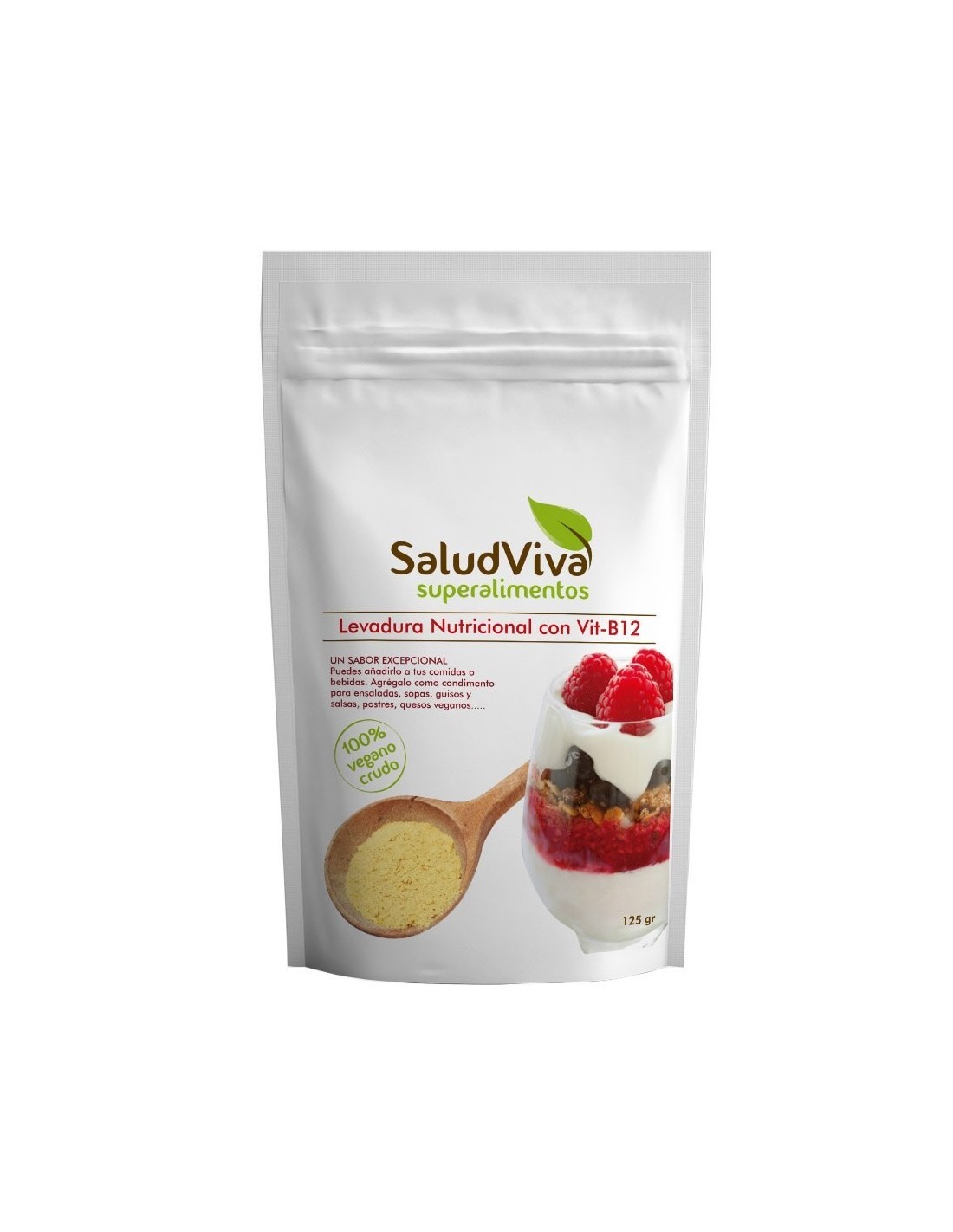 La levadura nutricional es una excepcional fuente de proteínas de gran calidad. Es extraordinariamente rica en todas las vitaminas del grupo B, B1, B2, B3, B5, B6, B9, B12 así como de la Biotina. Este excepcional alimento contiene además cantidades considerables de calcio, magnesio, hierro y cobre. Es una fuente de fibras dietéticas naturales y posee bajo contenido en grasa. Producto vegano.