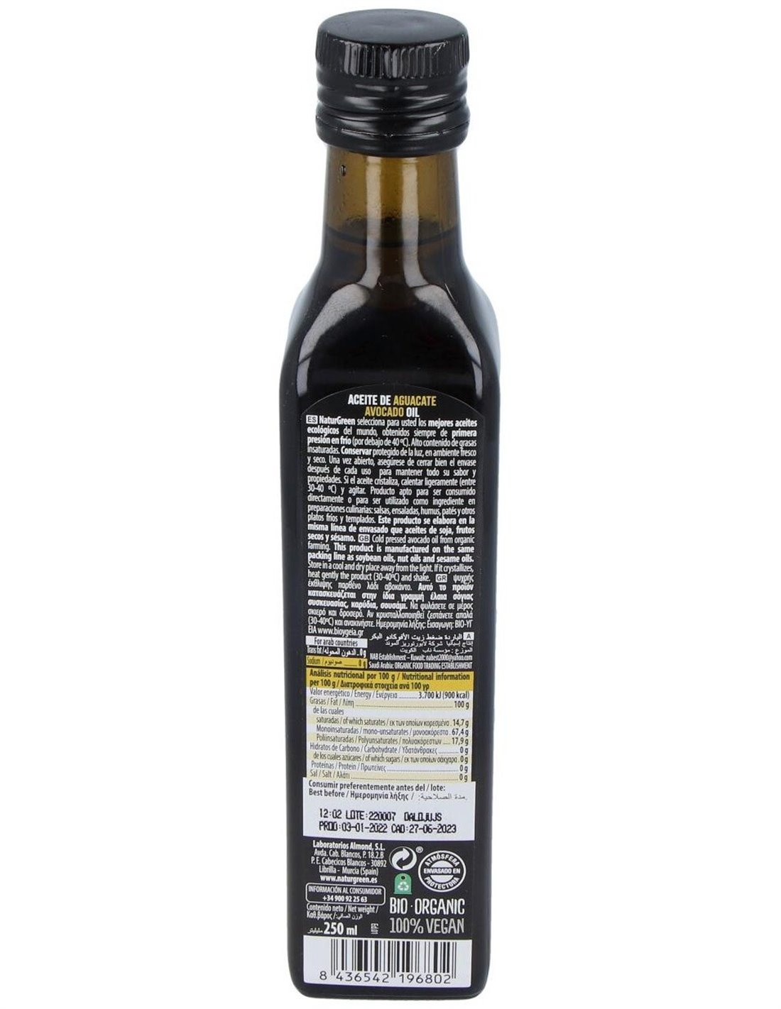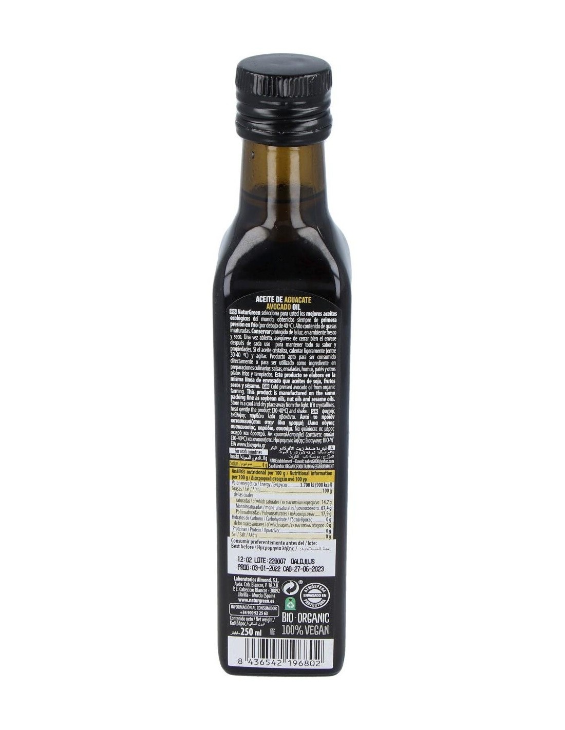 Aceite De Aguacate 250Ml. Bio de Naturgreen