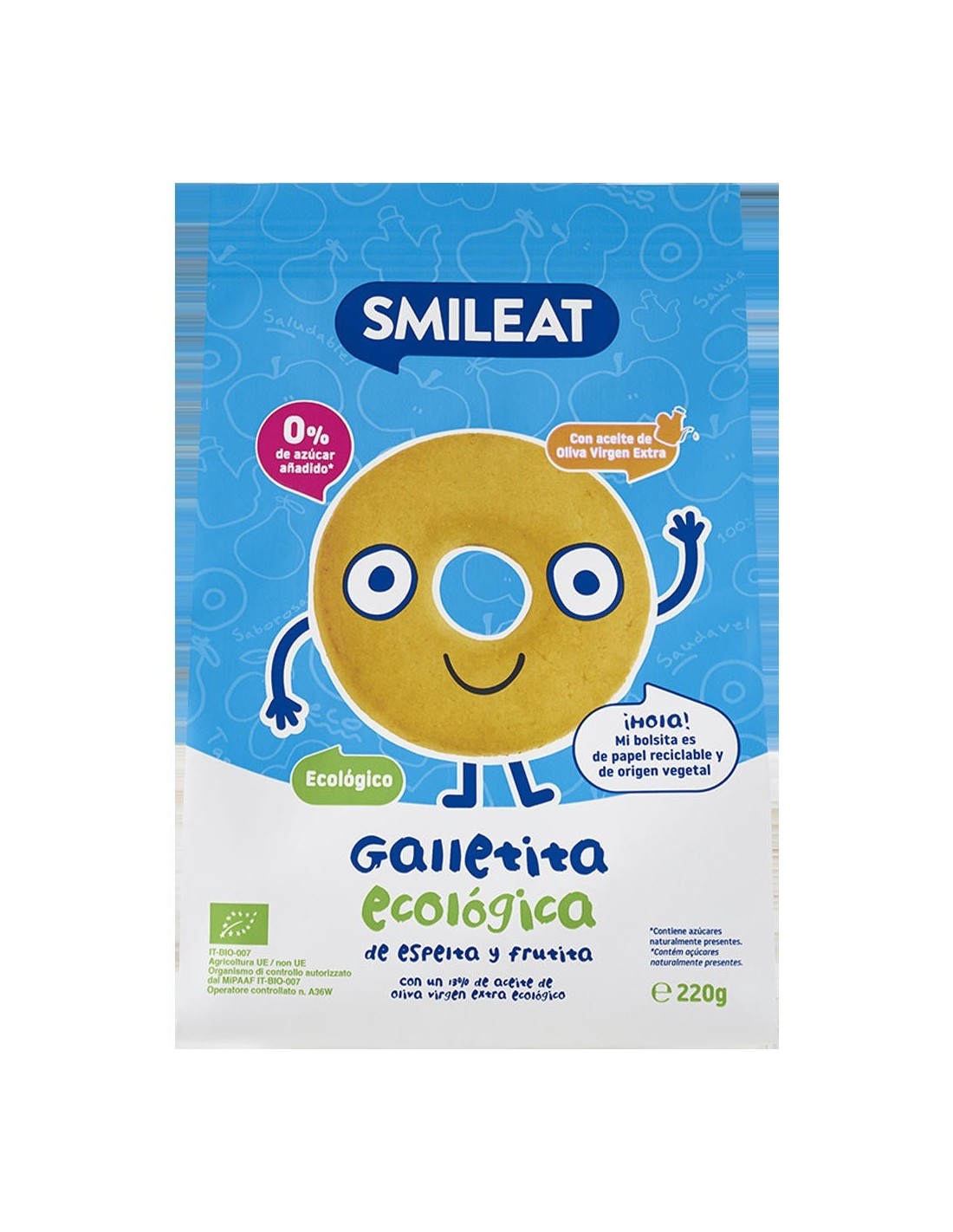 Galletas Infantiles De Espelta Con Manzana Bio, 220 G de Smileat