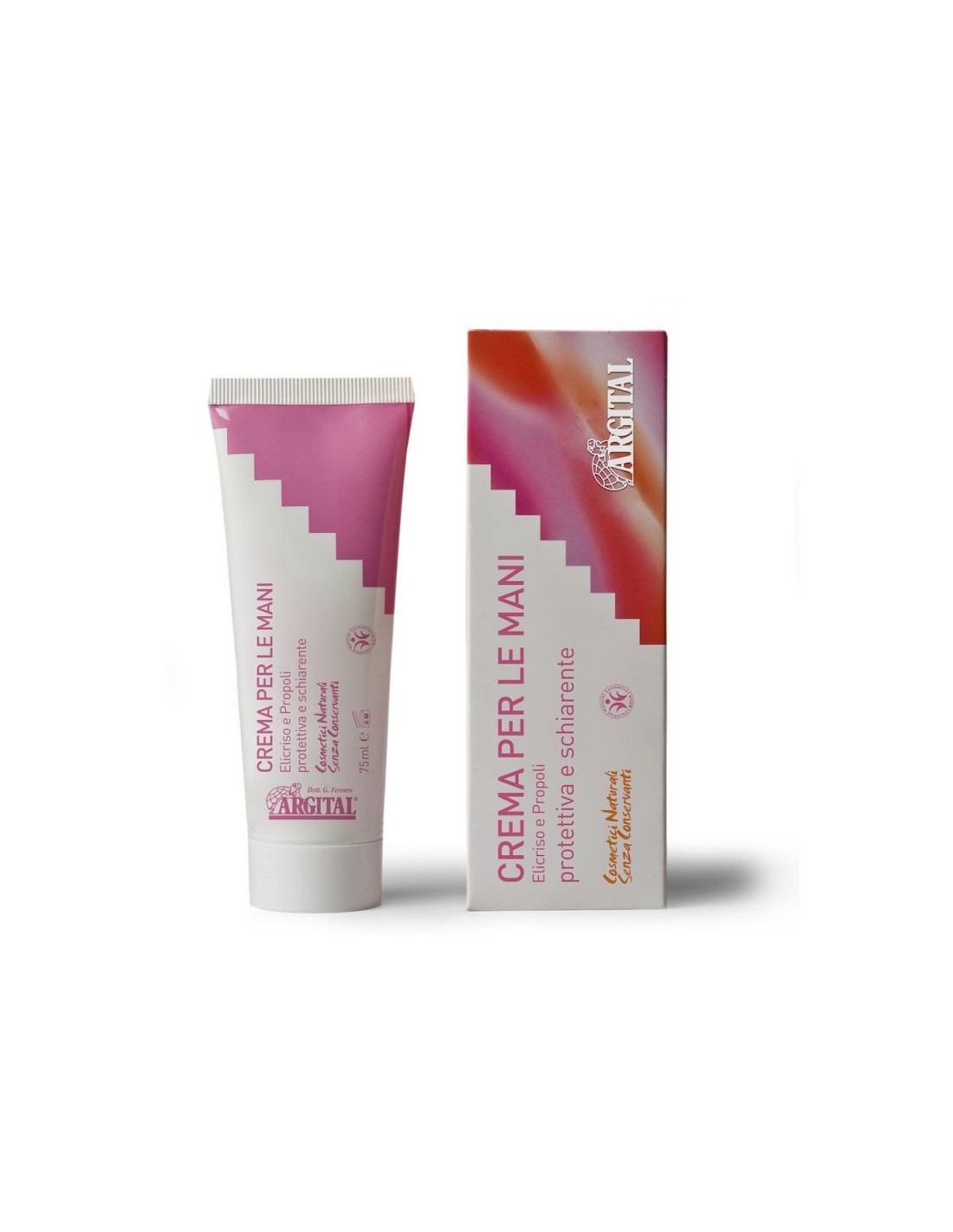 Extracto de flores de elicriso y flores de caléndula, pura manteca de cacao, puro aceite vegetal de almendra dulce, puros aceites esenciales de limón, verbena y lavanda y gel de arcilla verde.