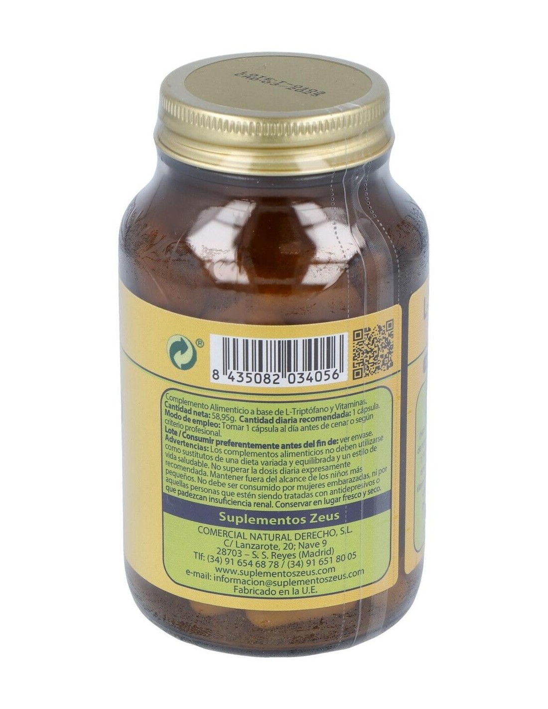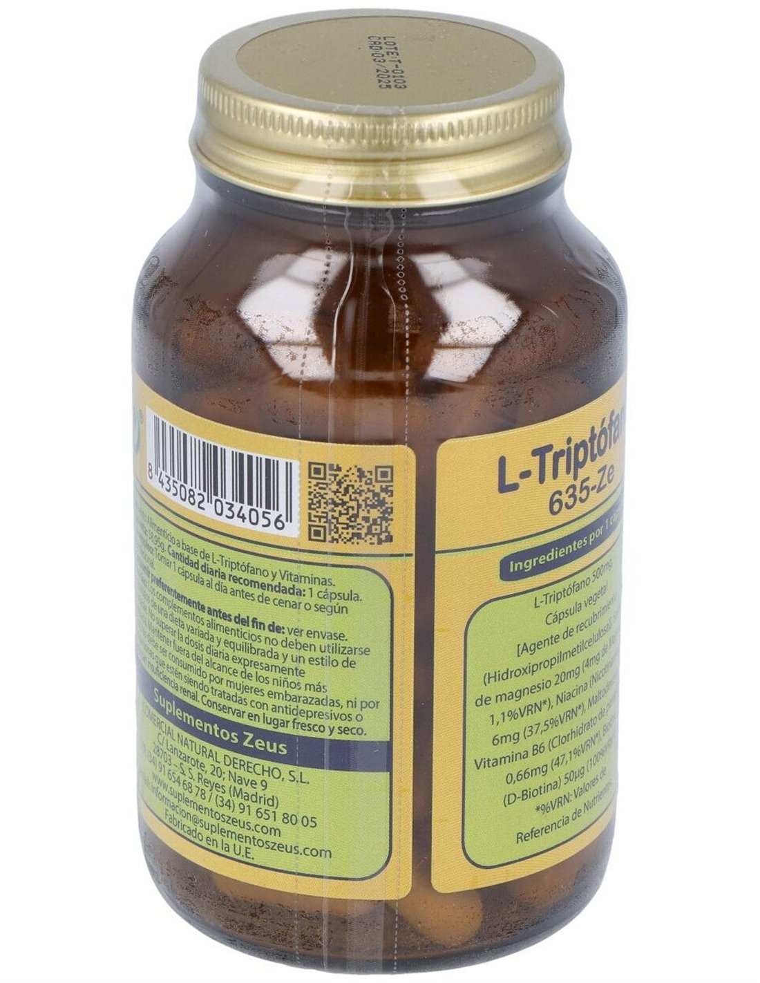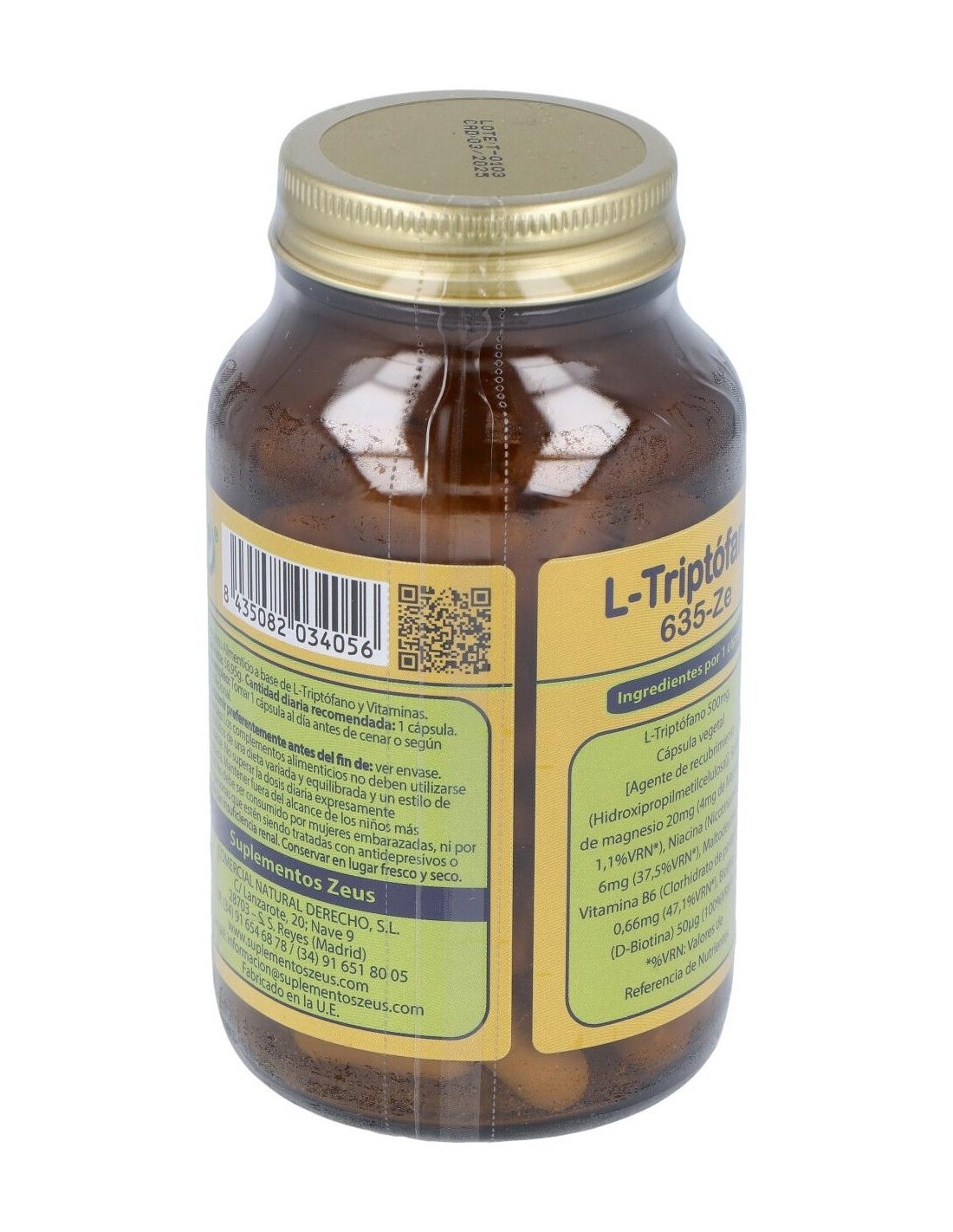 *El Triptófano de Laboratorios Zeus se obtiene por fermentación y es un producto 100% vegetal. Cada cápsula aporta 500mg de triptófano.