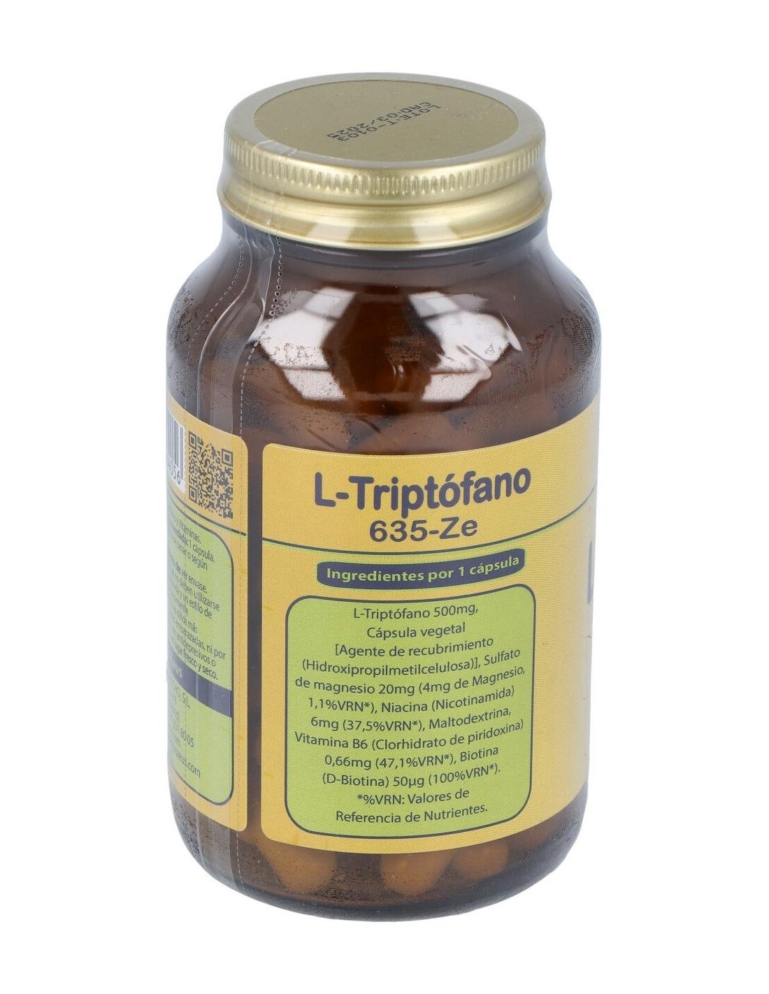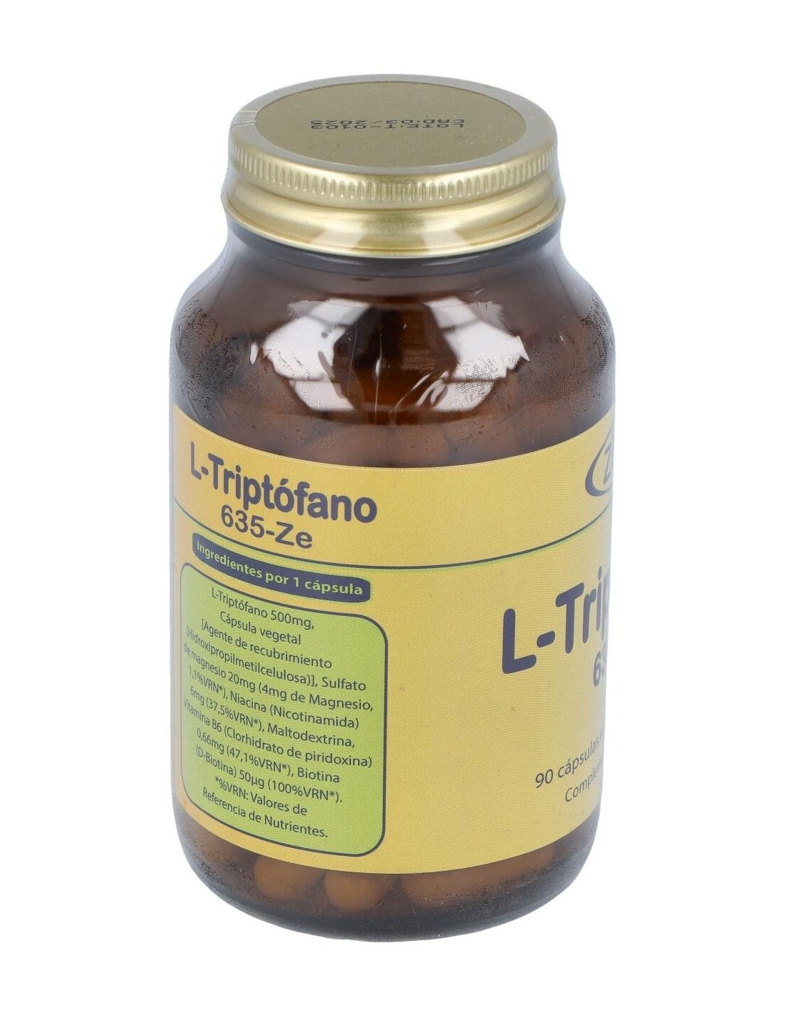 500 MG DE L-TRIPTÓFANO, 20 MG DE MAGNESIO, CDR DE VITAMINAS B3, B6 Y BIOTINA.
