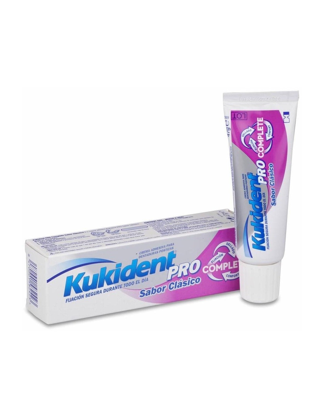 Proporciona una gran fijación y comodidad durante todo el día. Mantiene las prótesis en su sitio y proporciona un ajuste cómodo. Gracias a su sellado frente a los alimentos evita que las partículas de comida se filtren bajo la prótesis. El adhesivo Kukident se aplica con gran facilidad y se adapta increíblemente bien a la forma de las encías para conseguir un ajuste perfecto. Sabor a menta suave.