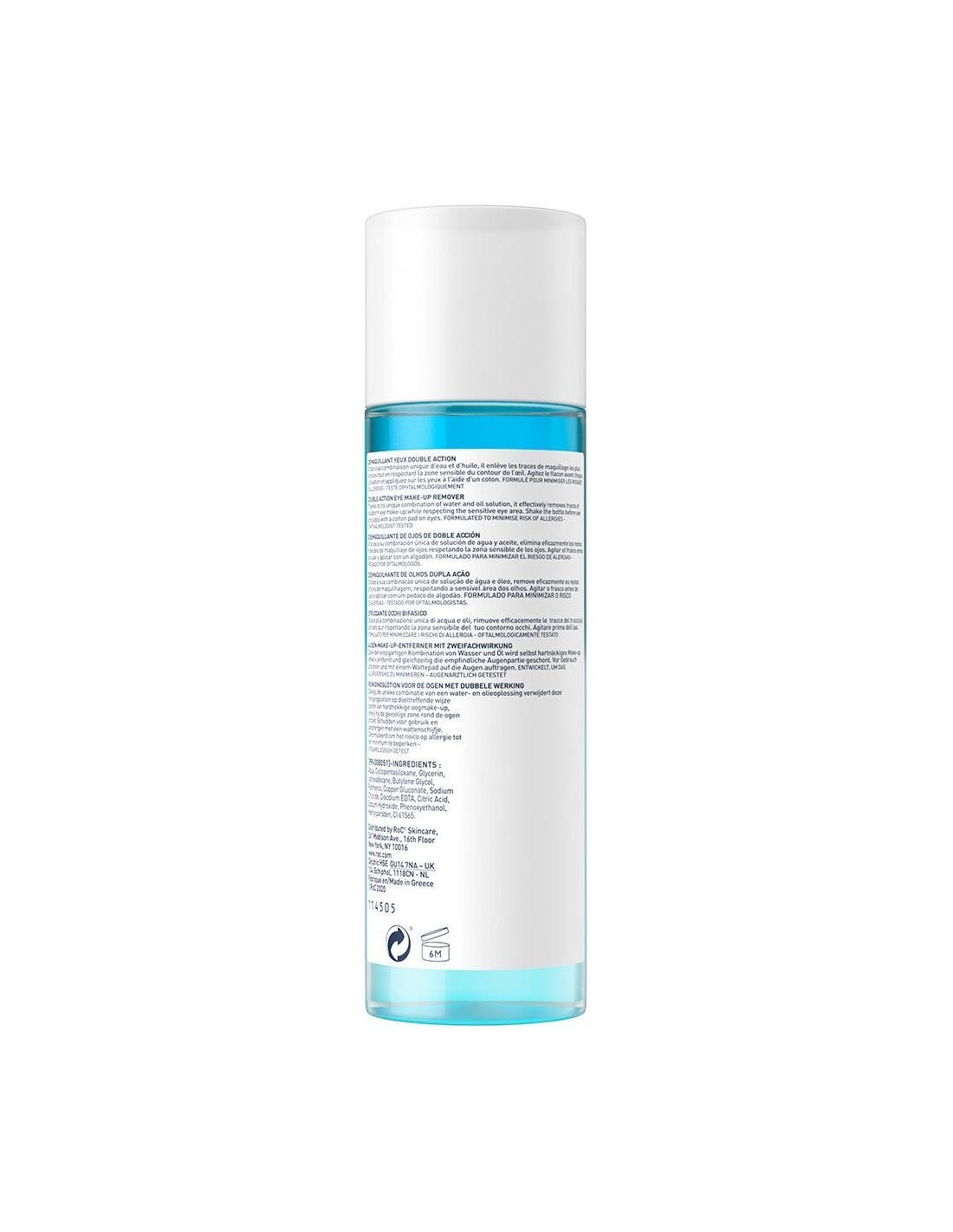 Gracias a su combinación única de agua y aceite, este desmaquillante elimina eficazmente los restos de maquillaje respetando la zona sensible de los ojos.
