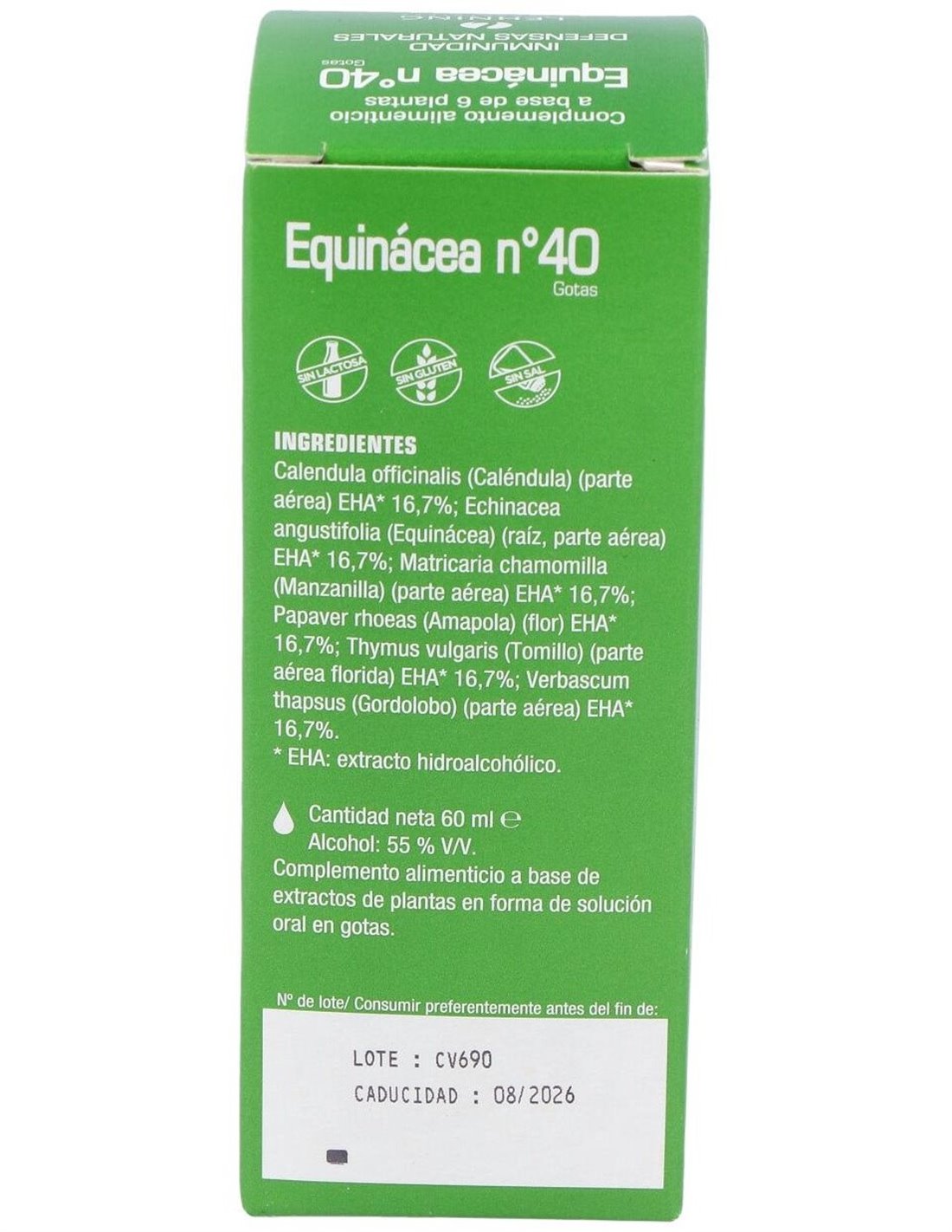 Suplemento que combina la acción de 6 plantas rigurosamente seleccionadas según las exigencias de calidad farmacéutica. Echinacea angustifolia y Matricaria chamomilla ayudan al normal mantenenimiento de las defensas. Thymus vulgaris, Verbascum thapsus, Calendula officinalis y Papaver rhoeas apoyan el mantenimiento normal de las vías respiratorias. Para adultos y niños mayores de 12 años.