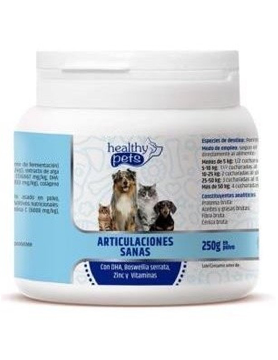 HEALTHY PETS vetEl Zinc contribuye al mantenimiento normal de los huesos. La vitamina C es fundamental para la formación del colágeno y el mantenimiento y funcionamiento de los huesos. La vitamina E protege a las células de la oxidación de las mismas.