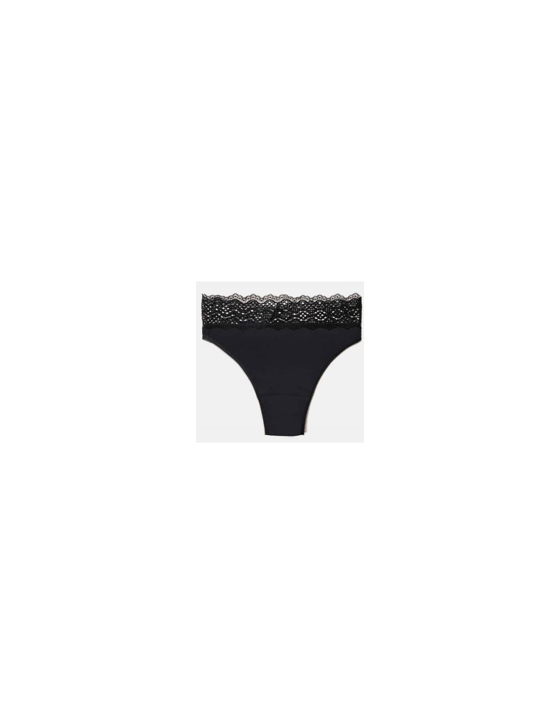 Braguita para la regla de corte clásico con una ligera apertura en los camales para que quede más estilizada. Es de fácil adaptación gracias a su blonda de encaje elástico en la cinturilla. La combinación de la blonda con el tejido de poliamida reciclada ambos en color negro, le aporta un aire de elegancia y sensualidad a la pieza. Composición libre de químicos y productos tóxicos. La poliamida reciclada es el tejido principal. Sus características hacen que la braguita sea muy cómoda y absorbente además de secarse rápidamente. La braguita incluye una capa extra de material técnico impermeable que evita fugas y olores y un sistema de sujeción patentado para que pueda adaptarse de forma precisa las compresas de distintos tipos de flujo en función de las necesidades durante tu ciclo menstrual. Este pack incluye una compresa de tela reutilizable de regalo.