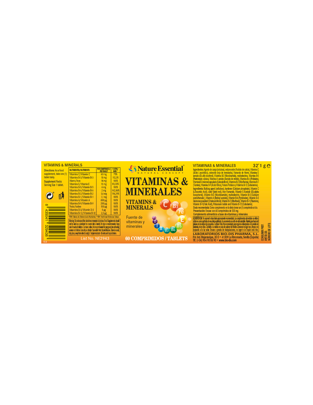 Vitaminas & minerales 60 comprimidos con vitamina C, hierro, vitamina E, vitamina A, vitamina D, yodo y vitaminas B-1, B-2, B-3,