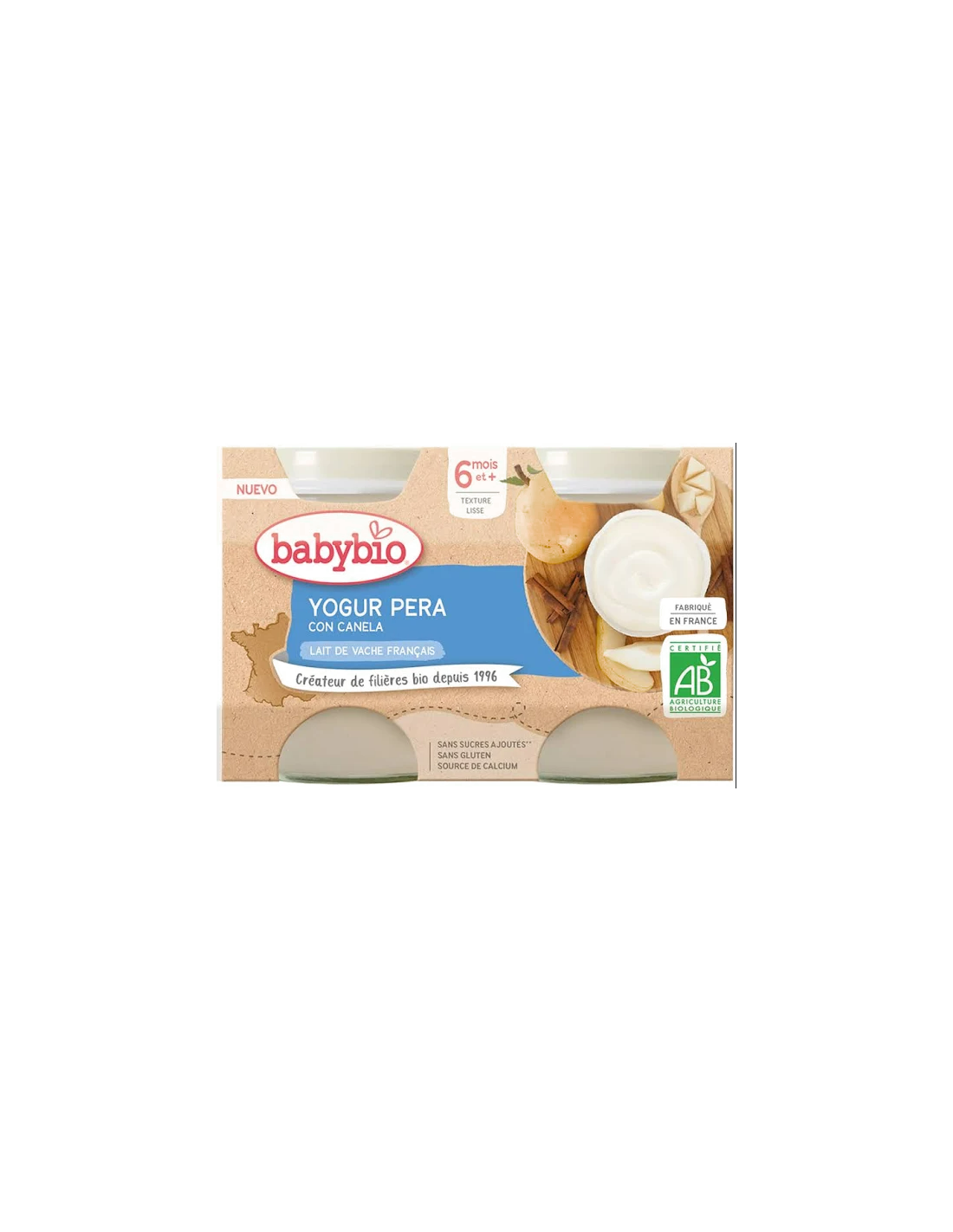 Yogur de pera con leche de vaca ecológica. Gran fuente de calcio, con ingredientes procedentes de la agricultura ecológica.