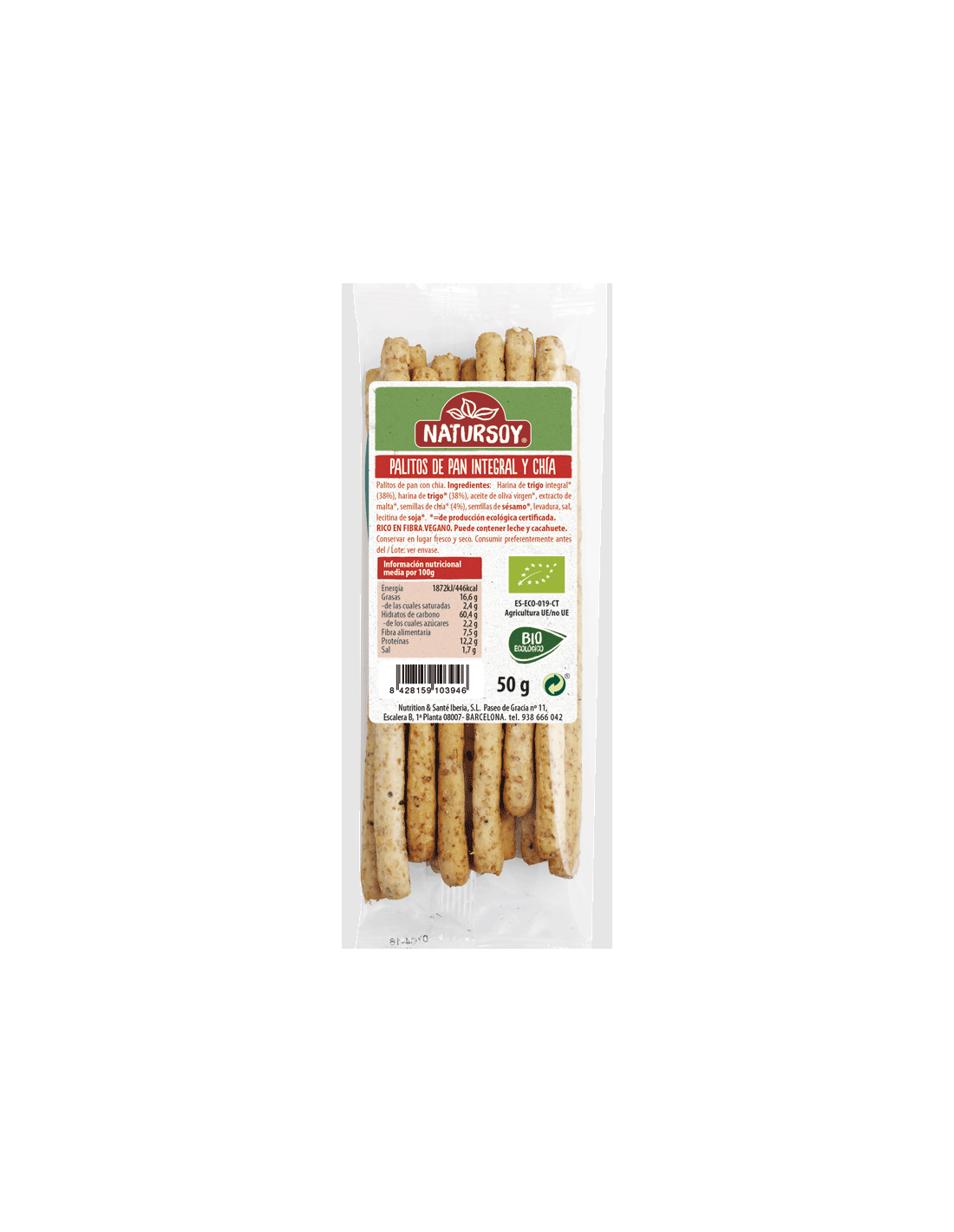 Palitos de trigo integral y chía 50 g Natursoy
