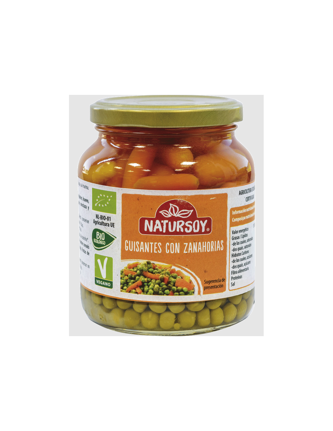 Ervilhas Cozidas com Cenouras Orgânicas da Natursoy de agricultura biológica. Indicação Natursoy oferece produtos de origem vegetal e agricultura orgânica. Saudável, biológico e de qualidade. NL01 Ingredientes Cenoura*, Água, Ervilhas*, Sal marinho. *De agricultura biológica. Certificado NL01 SKU: LP-0040661 BSKK7JJTQYT