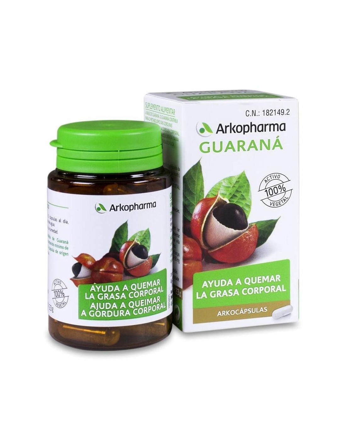 Fórmula com princípios ativos 100% vegetais com sementes de guaraná, que promovem a combustão das gorduras e ajudam a atingir o peso desejado, ao mesmo tempo que contribuem para a manutenção dos níveis normais de energia. Precauções: Não recomendado em crianças, nem em mulheres grávidas ou lactantes. Os suplementos alimentares não devem ser utilizados como substitutos de uma dieta equilibrada ou de um estilo de vida saudável. Não exceda a dose recomendada. Mantenha fora do alcance de crianças pequenas. Composição: Pó Integral e Extrato de Semente de Guaraná* BIO (Paullinia cupana Kunth.) - Agente de Volume: Goma Acácia BIO - Fibras de Maçã BIO (Malus domestica Borkh.) - Amido de Milho BIO. - Cobertura de origem vegetal: hidroxipropilmetilcelulose. Para 2 cápsulas: Pó de semente de guaraná 260 mg Extrato de semente de guaraná 240 mg Concentração de cafeína 33 mg (*)= Equivalente a 1340 mg de semente de guaraná por 2 cápsulas. Modo de usar: Tomar 2 cápsulas no café da manhã, com um copo grande de água. Proteger da luz, do calor e da umidade.