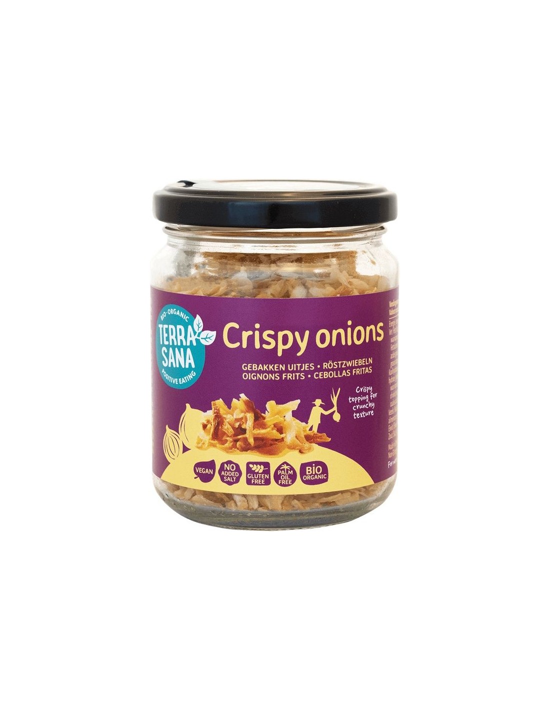 Mesa de arroz indonésio esta noite? Não se esqueça das cebolas crocantes! Este molho crocante é um favorito e indispensável em pratos indonésios. Estas cebolas crocantes são fritas em óleo de girassol, por isso não contêm óleo de palma. Saudável para você e para a terra. 85% cebola* (Egito), óleo de girassol* (Áustria) * = de agricultura biológica