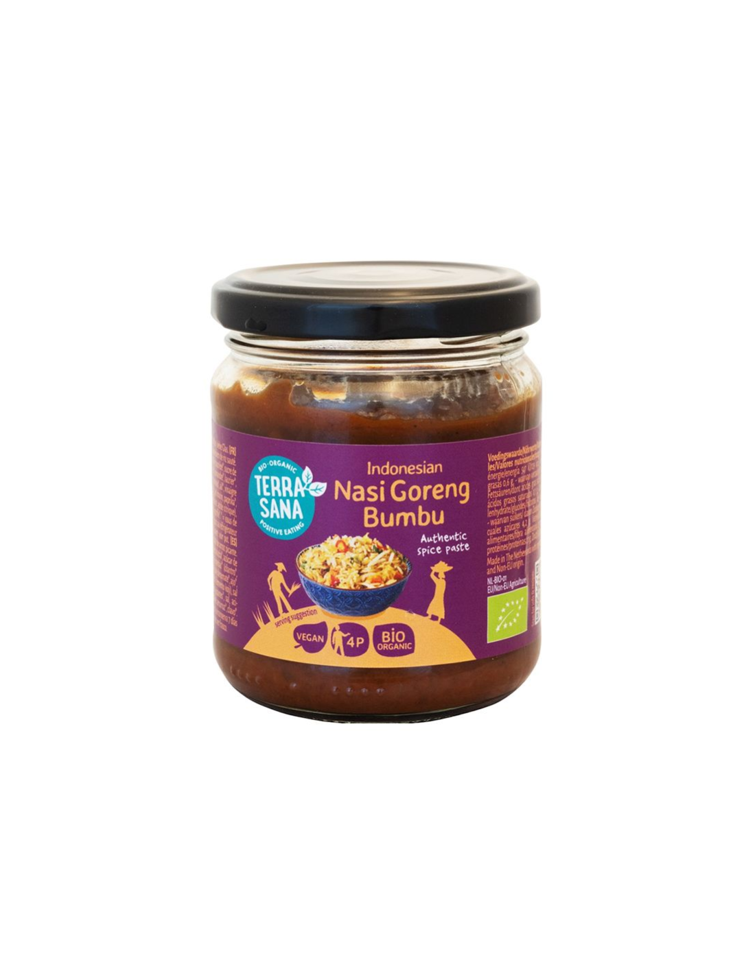 Você gosta de comida indonésia, mas não tem o conhecimento de temperos necessário para colocar um verdadeiro nasi goreng na mesa? Não te preocupes! Este bumbu indonésio para nasi goreng é cheio de sabor, é completamente vegano, porque não contém trassi (pasta de camarão), como a maioria das pastas de especiarias para nasi goreng. Ah, e também é orgânico e autenticamente indonésio. Água (Holanda), Cebola* (Egito), Molho de Soja* (Xarope de Beterraba*, Açúcar de Coco*, Sumo de Semente de SOJA*, Água, Sal Marinho, Especiarias*, Coentro*, Folha de Louro*, Erva-cidreira*) (O Holanda), açúcar de flor de coco* (Indonésia), extrato de tomate* (Itália), alho* (Egito), vinagre de sushi* (água, arroz integral*, marinada de sal, fermento de koji) (Japão), sal marinho (Portugal), pimenta* (Espanha), sambal oelek* (pimenta vermelha picante*, sal, acidulante: ácido cítrico) (Itália), pimenta branca* (Sri Lanka), espessante: araruta* (Índia), cravo* (Sri Lanka) * = da agricultura orgânica