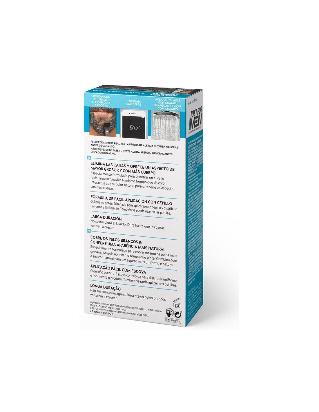 JUST FOR MENElimina las canas para lograr un aspecto de mayor grosor y con más cuerpo. Suaviza al mismo tiempo que da color. Coloración con cepillo de fácil aplicación. Fórmula más cremosa. Aplicación más fácil. Con biotina, aloe y aceite de coco. Resultados en 5 minutos. Dura hasta que las canas vuelven a crecer.