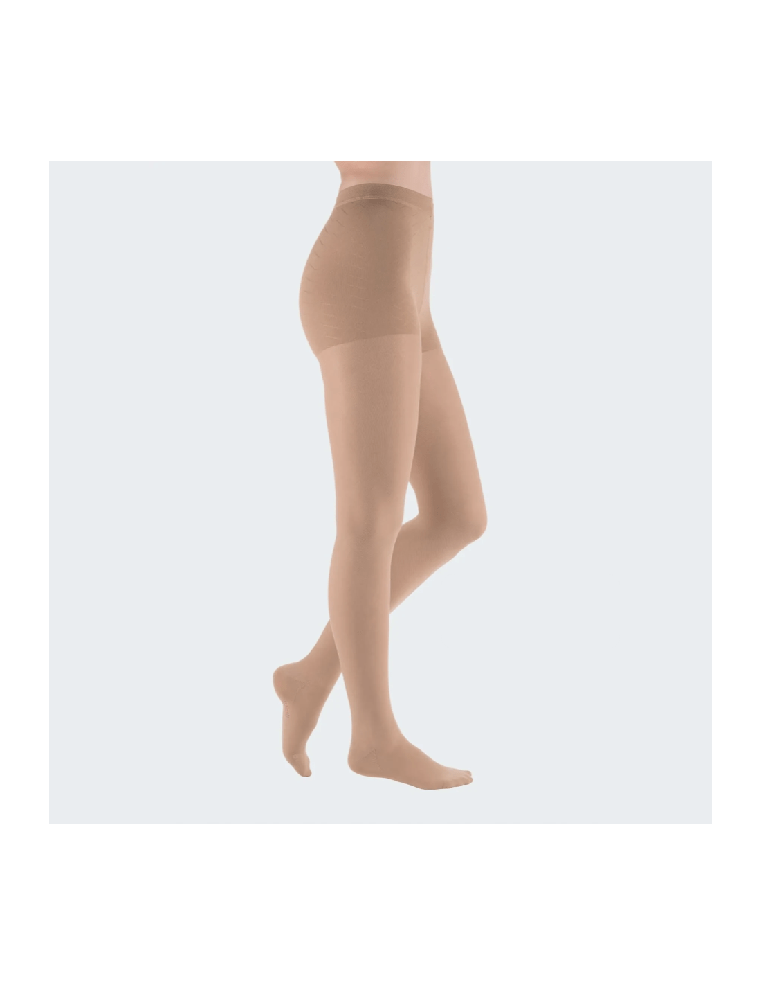 Las medias de compresión MEDIVEN ELEGANCE AT (PANTY) es una media de compresión médica de punto circular con un aspecto de media fina. Se utiliza para la compresión, entre otras cosas, en el tratamiento de dolencias y enfermedades del sistema venoso de la pierna.