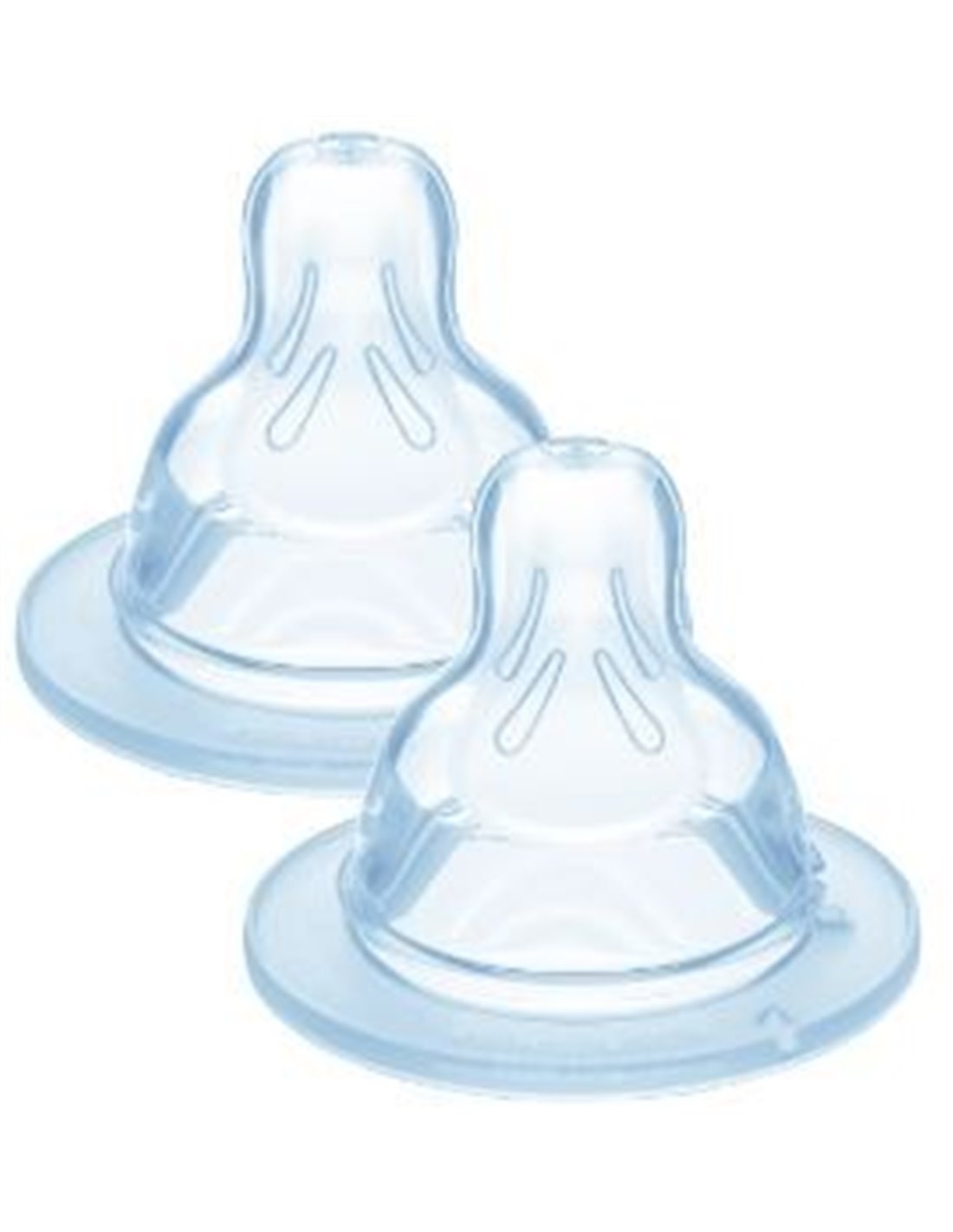 Tetina de silicona ultra suave diseñada para bebés recién nacidos. Ayuda a alimentar al bebé sin ahogos. Contribuye a la transición entre la lactancia materna y el biberón. Contiene dos tetinas de flujo lento. Adecuado para leche materna y alguna infusión. Forma simétrica, se adapta fácilmente a la boca del bebé. Apto para bebés a partir de los 0 meses.