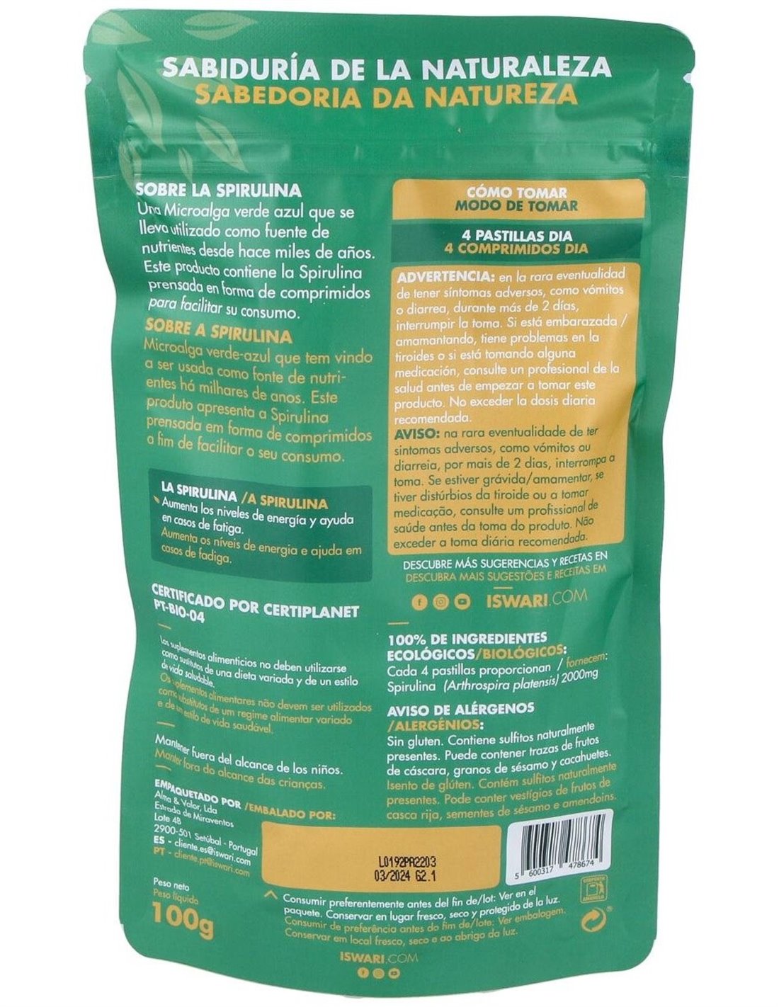 Spirulina Bio 200 Tabletas 100 Gr Es de Iswari