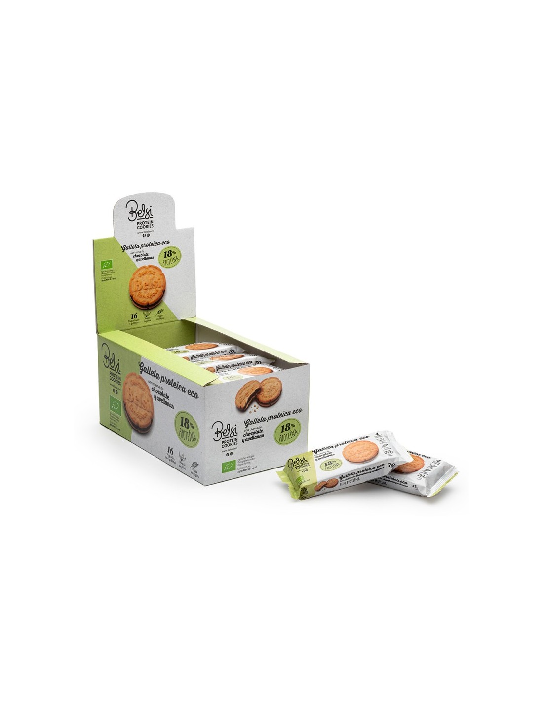 Galleta Rellena cacao/avellana proteica eco 16x70 g de Belsi