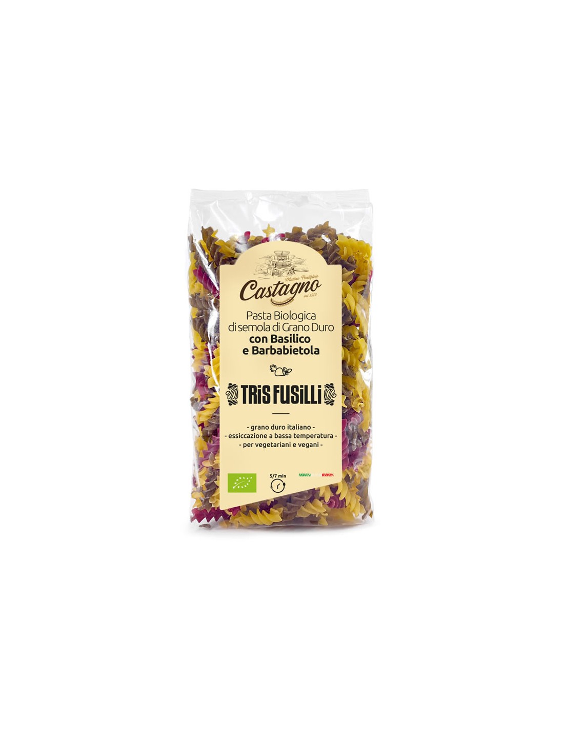 ESPIRALES DE TRIGO REMOLACHA Y ALBAHACA. 500 g de Castagno