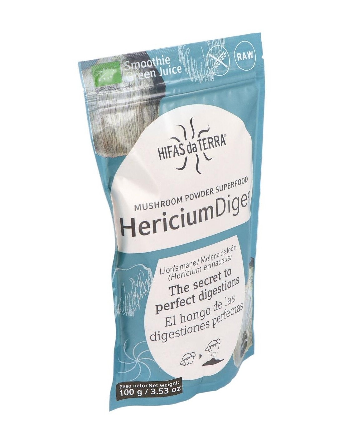 Alimento ecológico elaborado con polvo de hongo melena de león. La melena de león o hericium erinaceus, es un hongo con propiedades medicinales, ayuda a la recuperación de las heridas provocadas en el sistema nervioso estimulando el crecimiento y la reparación de las neuronas. Es una fuente natural de proteínas, fibras y polisacáridos. Producto ecológico certificado por la Unión Europea. Además es apto para celiacos, intolerantes a la lactosa, veganos y vegetarianos.