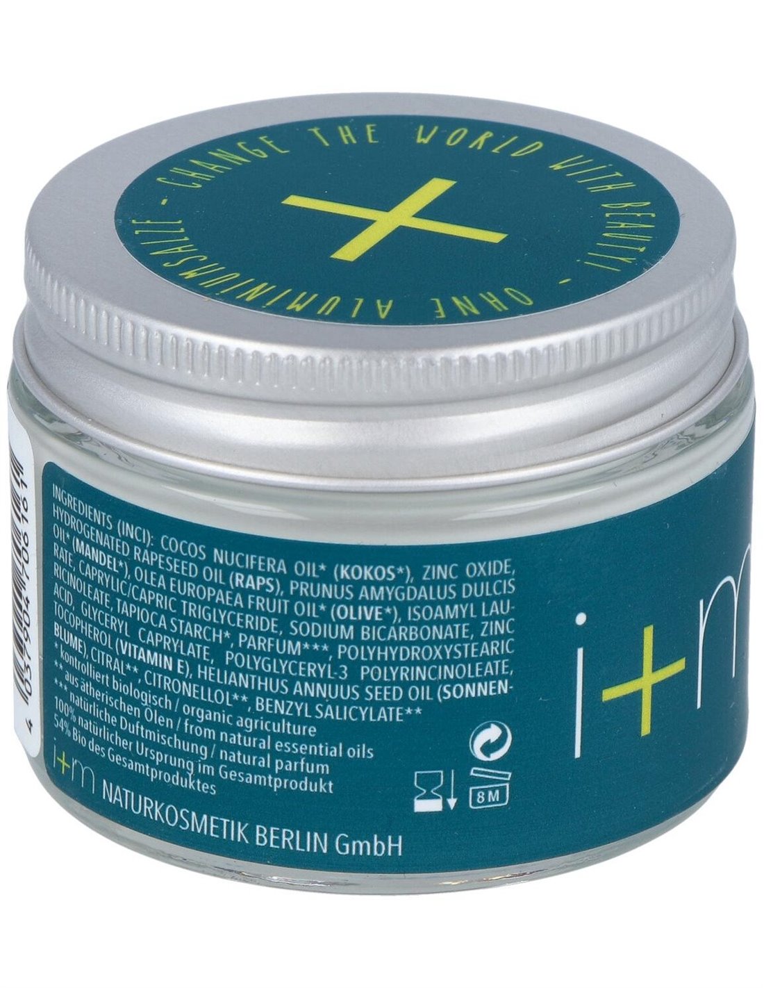 Cocos Nucifera Oil*, Hydrogenated Rapeseed Oil, Prunus Amygdalus Dulcis Oil*, Olea Europaea Fruit Oil*, Isoamyllaurate, Zinc Oxide, Sodium Bicarbonate, Zinc Ricinoleate, Tapioca Starch*, Caprylic/Capric Triglyceride, Parfum, Helianthus Annuus Seed Oil, Tocopherol, Polyglyceryl-3 Poly rincinoleate, Polyhydroxystearic Acid, Glyceryl Caprylate, Cinnamyl Alcohol*, Citral, Citronellol, Coumarin, Eugenol, Geraniol, Limonene, linalool .