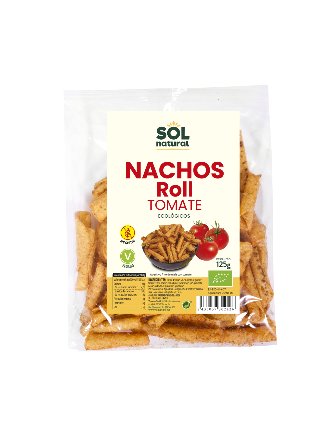 Pack 24 Uds. Nachos Roll Maíz Tomate Sin Gluten Bio 125 g de Solnatural