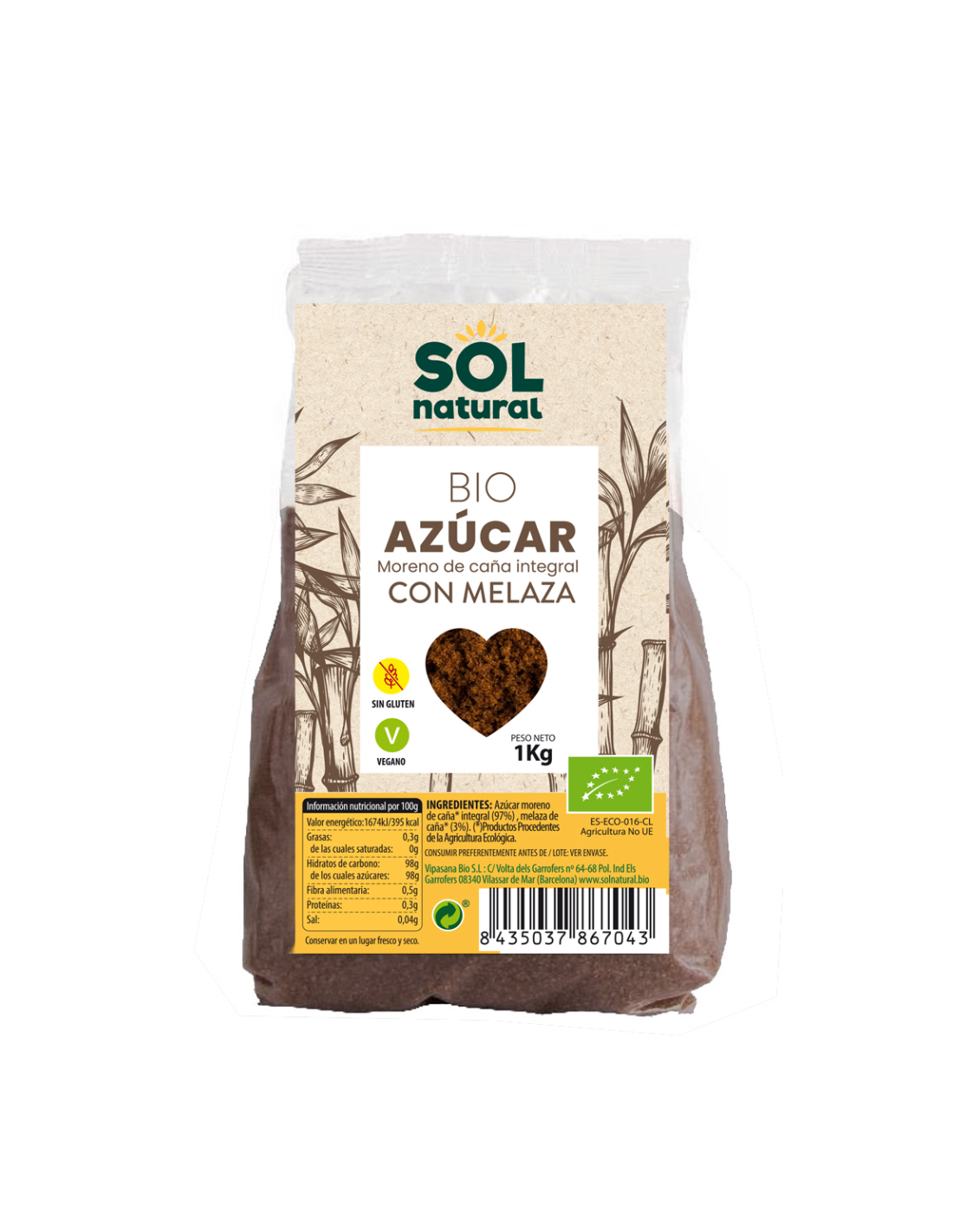 Pack 12 Uds. Azúcar Moreno De Caña Integral Con Melaza Bio 1 Kg de Solnatural