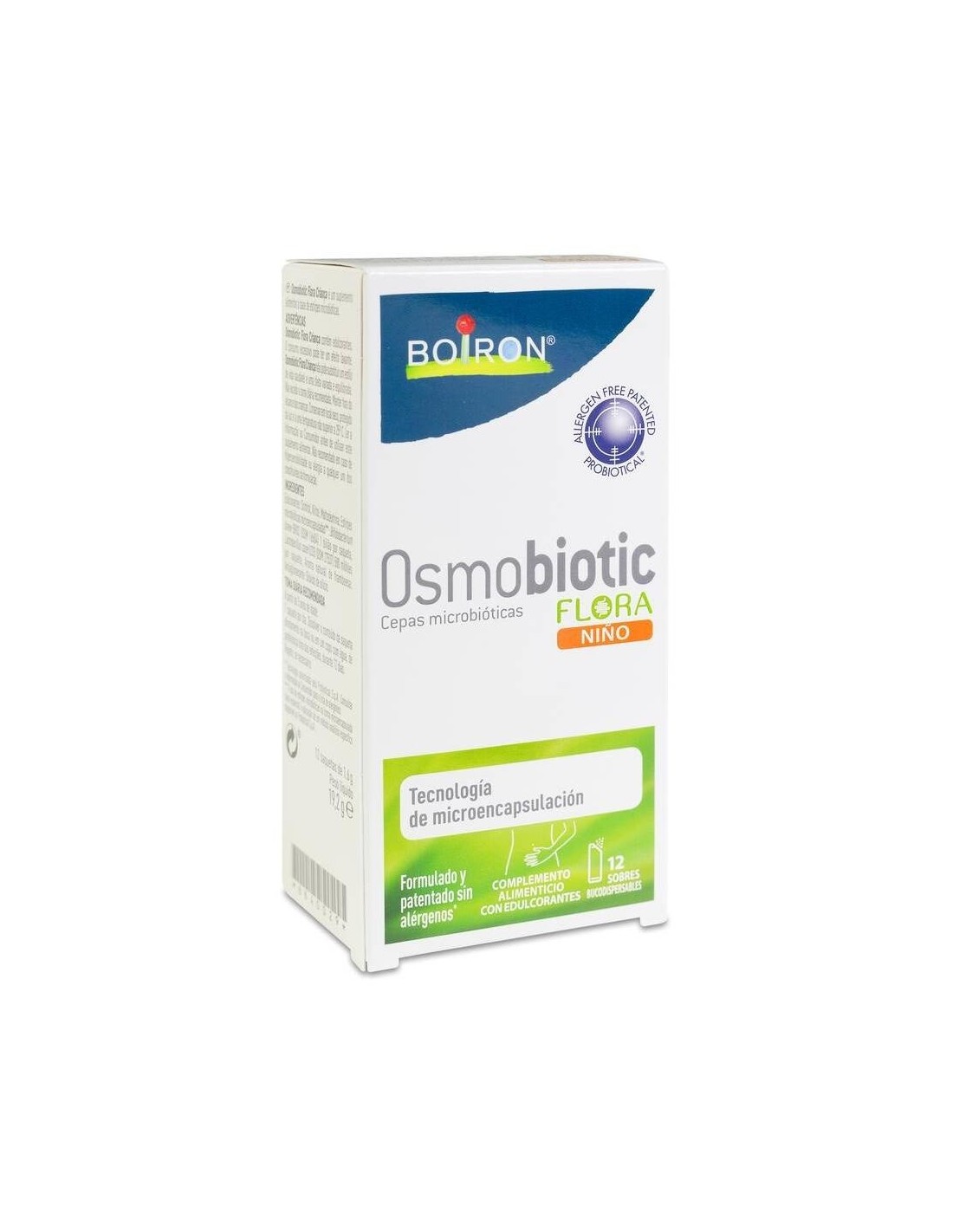 Osmobiotic Flora Niño es un complemento alimenticio con edulcorantes a base de cepas microbióticas, que cuenta con Tecnología de microencapsulación. Formulado y patentado sin alérgenos. Presentado en sobre bucodispersables con sabor a frambuesa. A partir de 3 años.