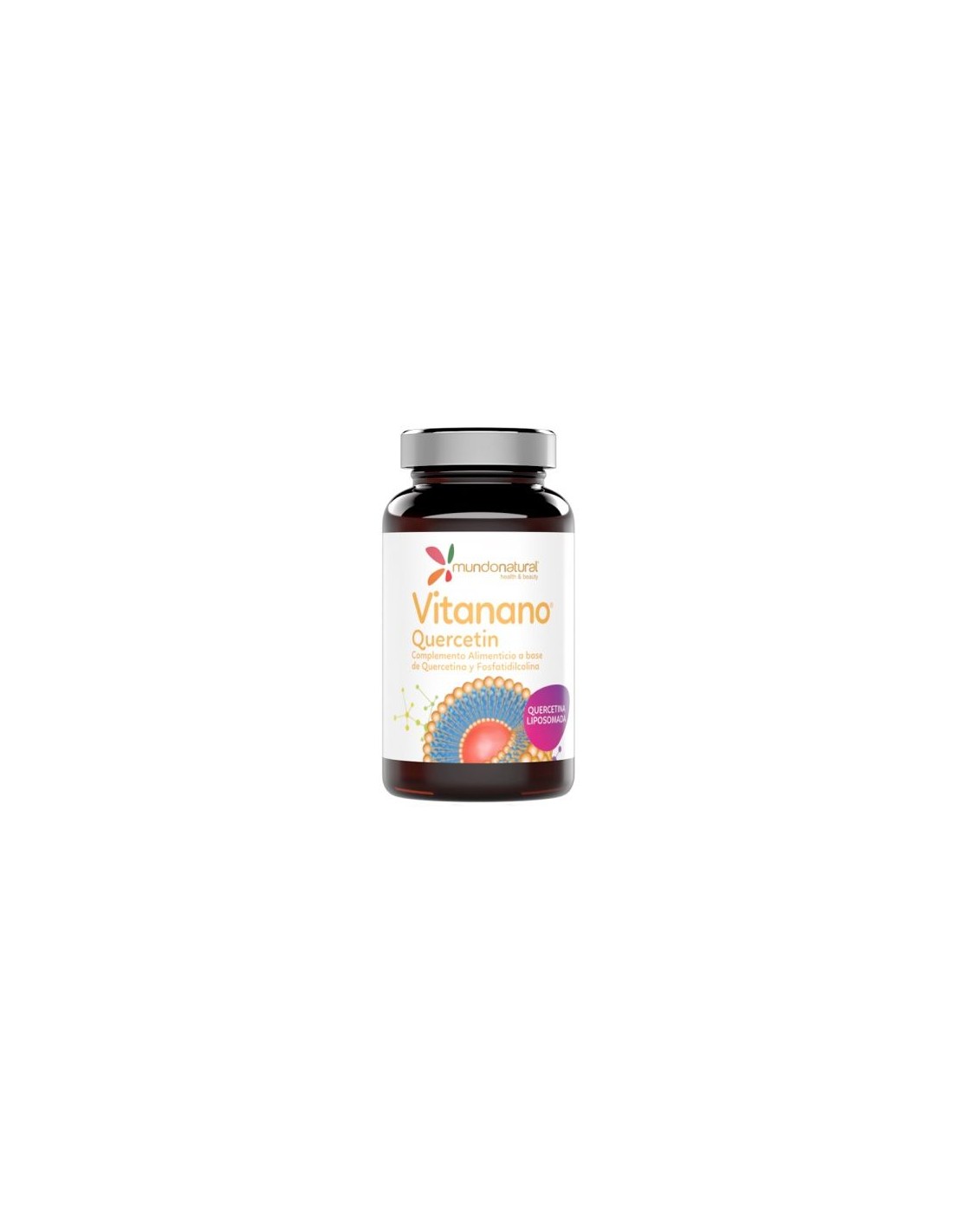 MUNDONATURALComplemento Alimenticio a base de Quercetina y Fosfatidilcolina. La quercetina tiene asociadas propiedades antioxidantes y se le atribuye la función de ayudar al normal mantenimiento cardiovascular. Además, puede ser de ayuda en caso de alergias.