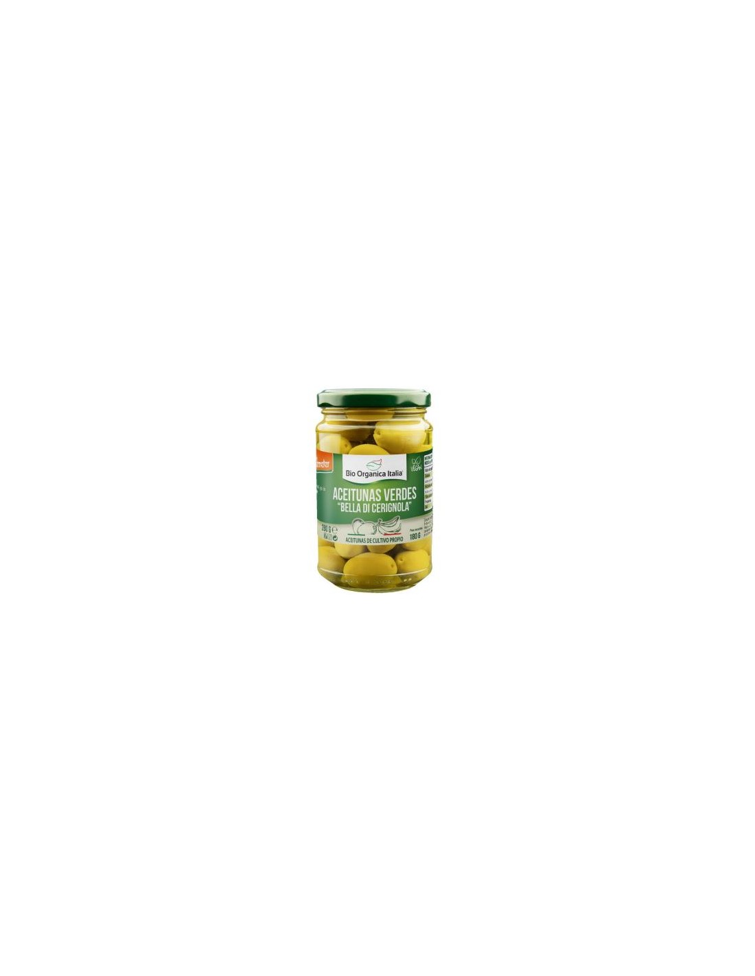 BIO ORGANICA ITALIAAceitunas verdes gigantes enteras conservadas en salmuera. Las aceitunas de la variedad de mesa 'Bella di Cerignola' representan una excelencia de la tradición gastronómica. Este cultivar de Apulia toma su nombre de la ciudad de Cerignola, en la provincia de Foggia, donde se cultiva en un área restringida del territorio de Dauno. Una cadena de suministro muy corta: recolectado exclusivamente a mano, se procesa pocas horas después de la recolección y se envasa en su estado natural (sin pasar por procesos térmicos), lo que permite disfrutar de un producto carnoso con un sabor típico, sazonado según la antigua Apulia. Certificado Demeter.
