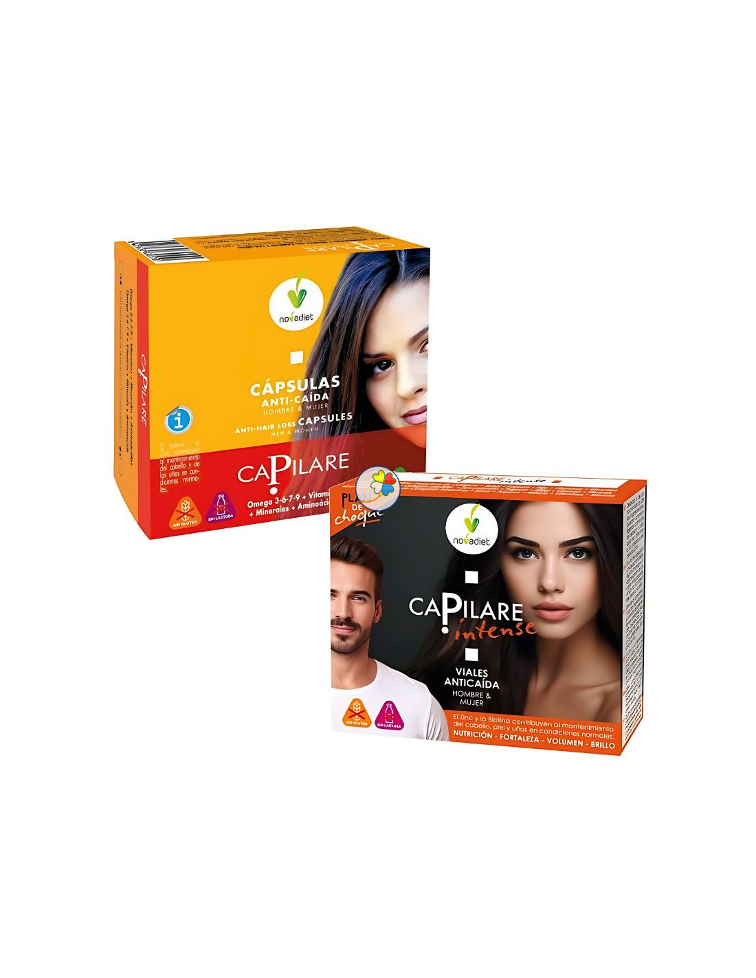 Pack que contiene Capilare Anticaída 60 cápsulas + Capilare intense 12 viales.