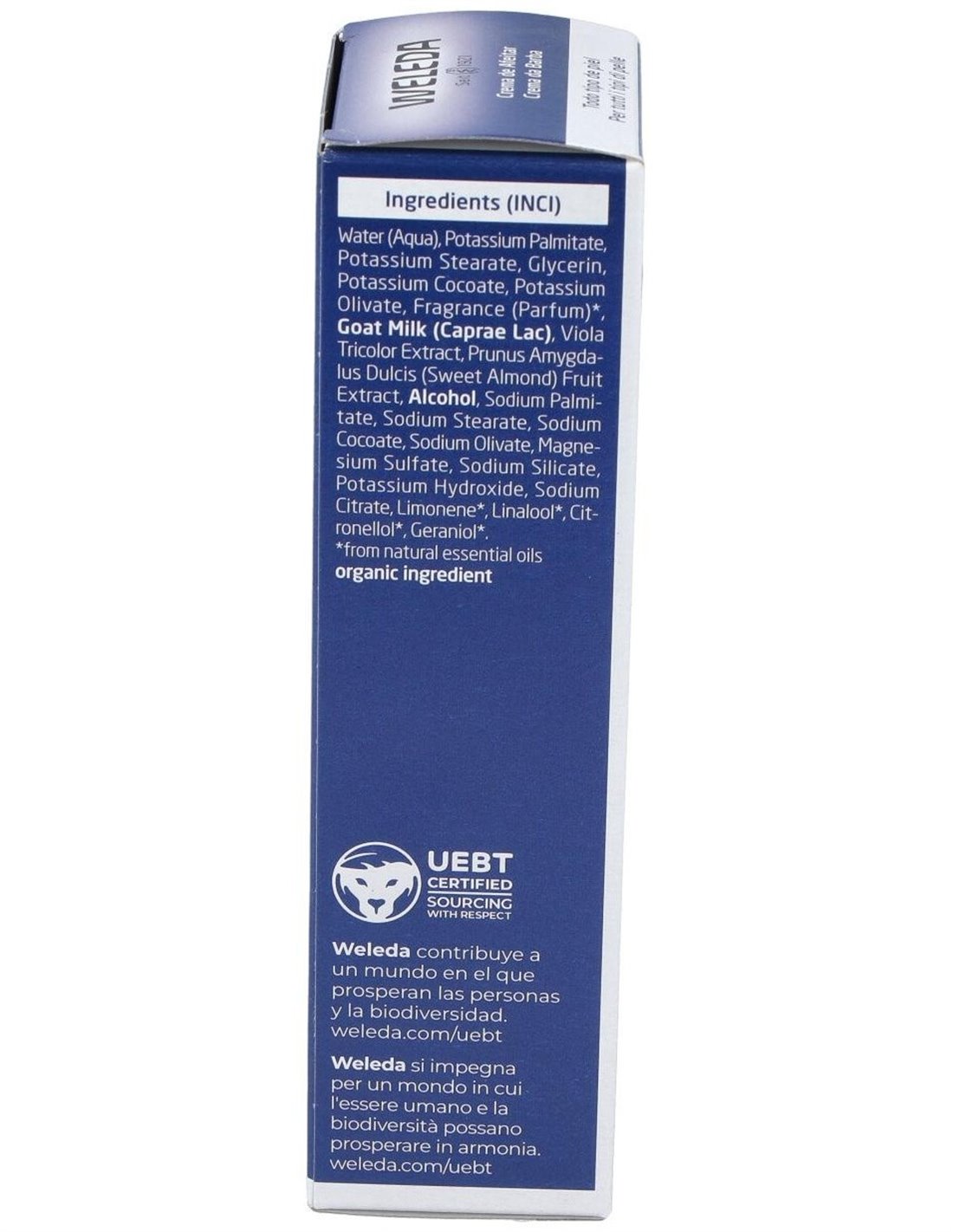 Agua, jabón de base con aceites vegetales (oliva y coco), glicerina, aceites esenciales naturales, extracto de pensamiento, extracto de almendra dulce, leche de cabra, silicato de sodio, sulfato de magnesio, alcohol.