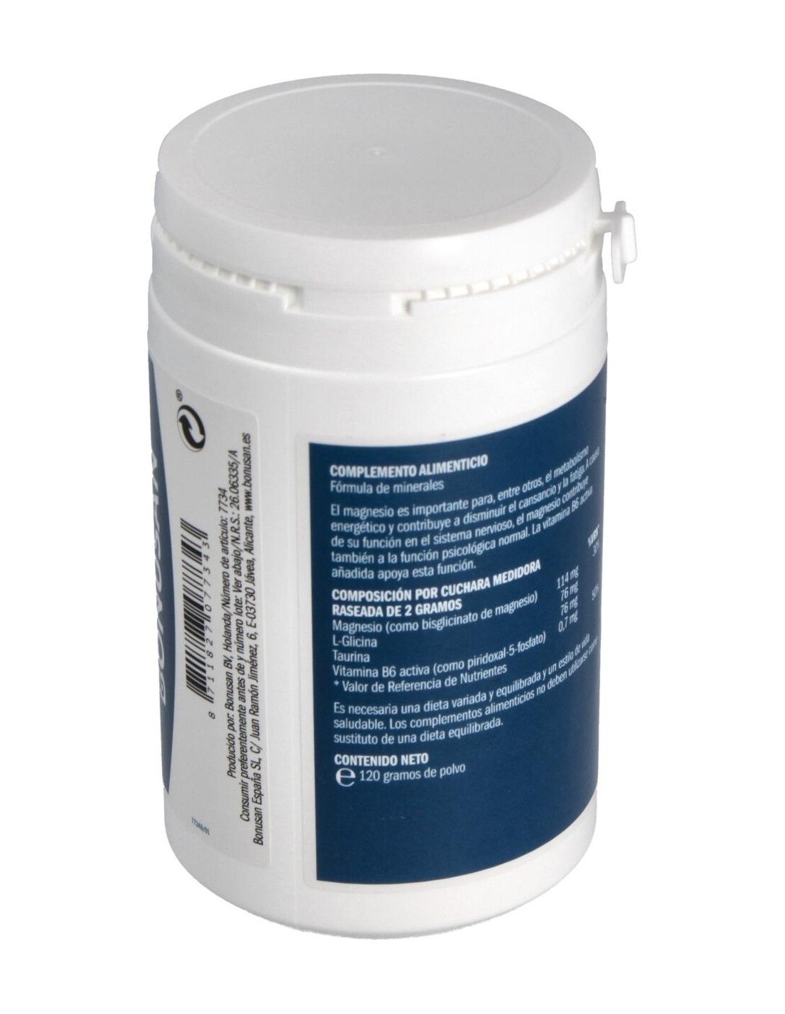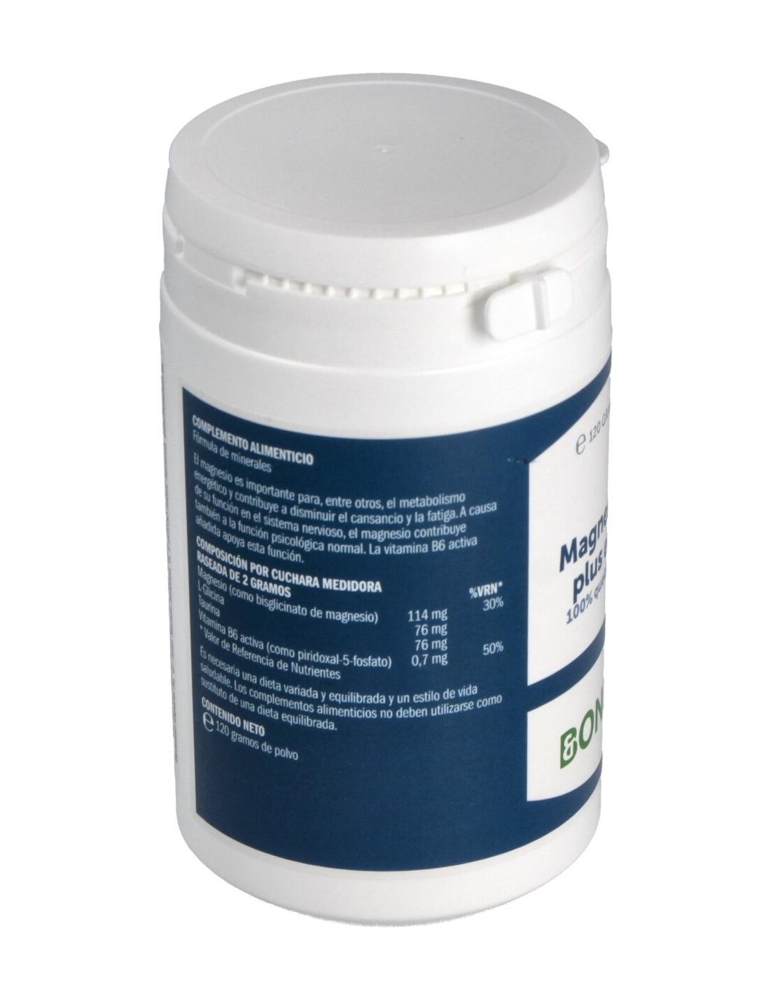 Complemento alimenticio de magnesio que ayuda a la función psicológica normal. La Combinación única de magnesio de alta calidad con las sustancias taurina y L-glicina. Alta biodisponibilidad gracias al bisglicinato de magnesio completamente reaccionado. Con sinergistas glicina y taurina. Además el magnesio contribuye al funcionamiento normal de los músculos y ayuda a disminuir el cansancio y la fatiga. Es necesaria una dieta variada y equilibrada y un estilo de vida saludable. Los complementos alimenticios no deben utilizarse como sustituto de una dieta equilibrada.