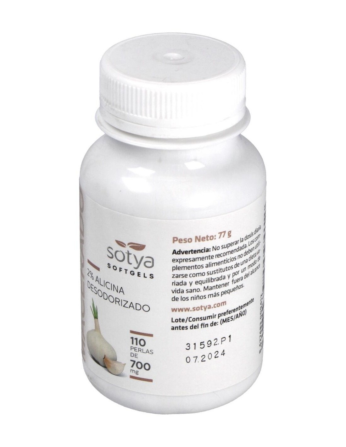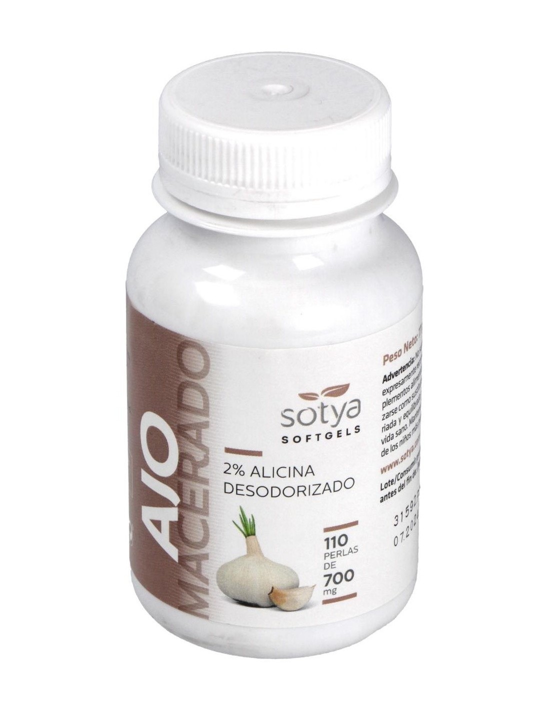 Sotya Ajo Macerado son unas perlas concentradas de aceite macerado de ajo que te ayudarán a disfrutar de todos los beneficios de este activo vegetal. Cada perla contiene 500mg de aceite macerado de ajo.