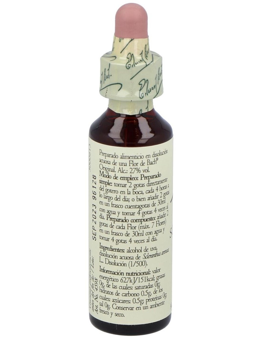 Preparado compuesto: Añadir 2 gotas de cada flor (máximo 7 flores) en un frasco de 30 ml. y tomar 4 gotas al menos 4 veces al día.