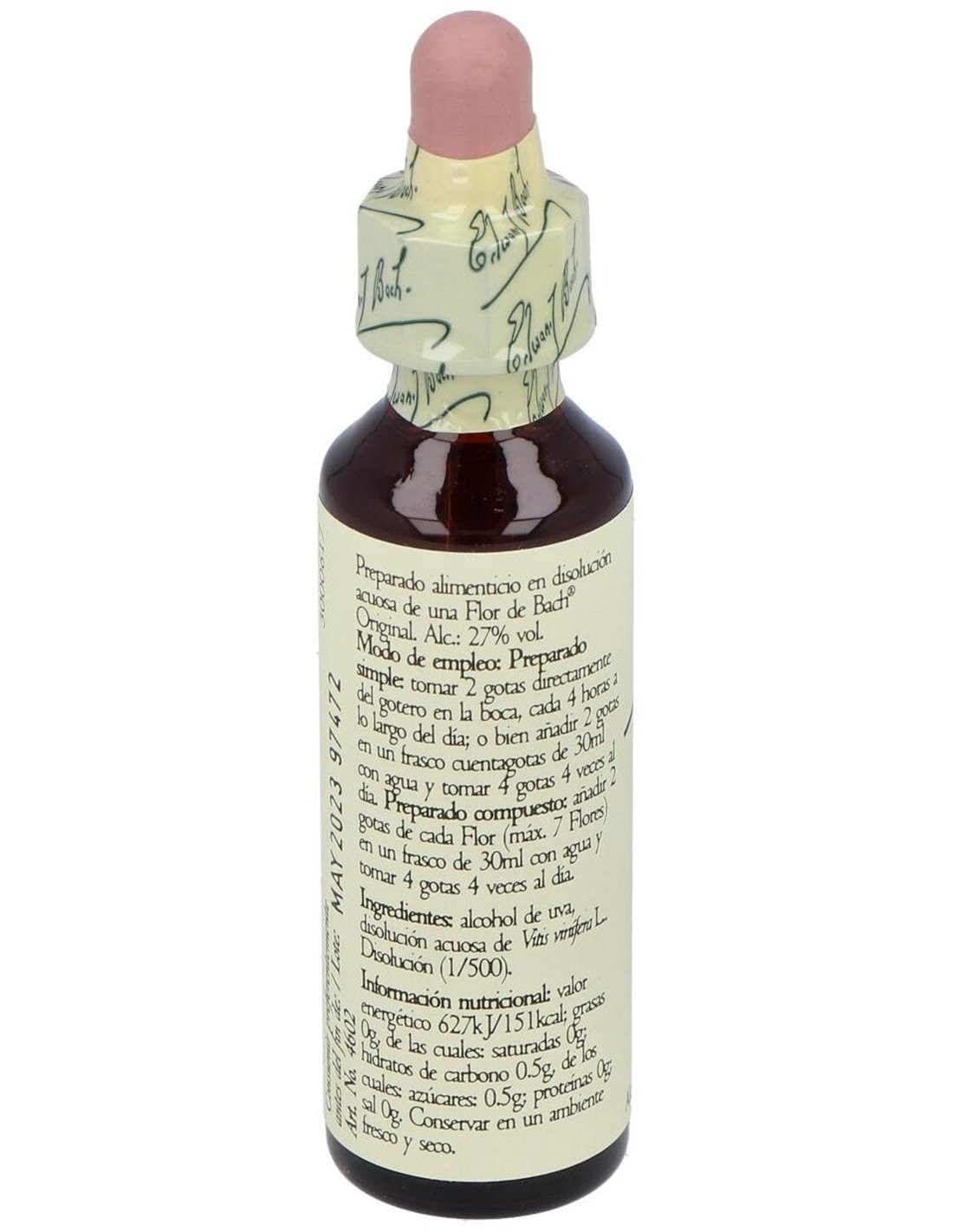 Preparado compuesto: Añadir 2 gotas de cada flor (máximo 7 flores) en un frasco de 30 ml. y tomar 4 gotas al menos 4 veces al día.