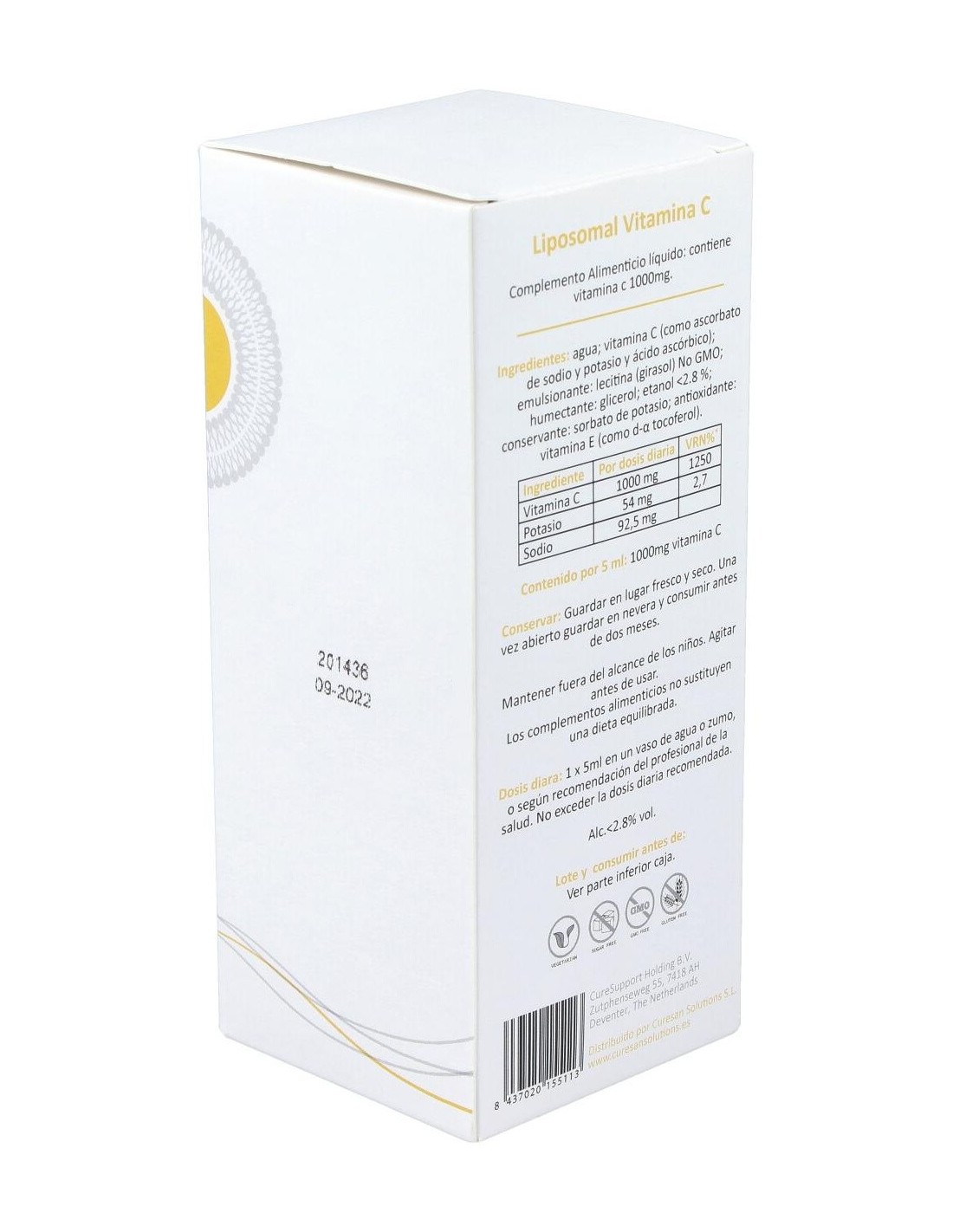Complemento alimenticio líquido que, por su aporte de vitamina C, contribuye a mantener la función normal del sistema inmune durante y después del ejercicio físico intenso, a la formación normal de colágeno para la función normal de los vasos sanguíneos, huesos, cartílago, función normal de las encías, función normal de la piel, etc.