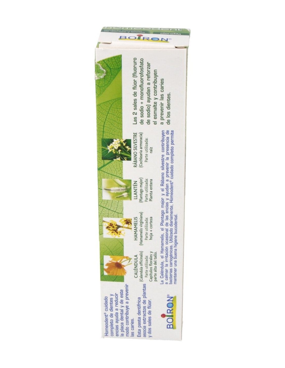 Pasta dental con flúor formulada a base de extractos naturales de caléndula, rábano, hammamelis y plátano. Contiene 1450 ppm de monofluorofosfato de sodio. Favorece la higiene bucal y la prevención de placa dental. Contribuye a refrescar el aliento sin agredir el esmalte. Indicada para adultos.