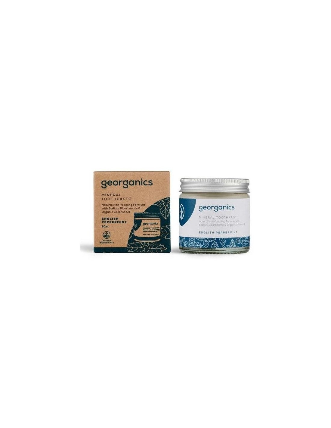 GEORGANICSEste dentífrico blanqueador no espumoso contiene, entre otros, carbonato de calcio y arcilla de caolín. Saborizado con aceite de menta orgánica por su aroma refrescante y propiedades antibacterianas. Libre de fluoruro, SLS y glicerina. Certificado COSMOS orgánico, libre de crueldad animal y vegano.