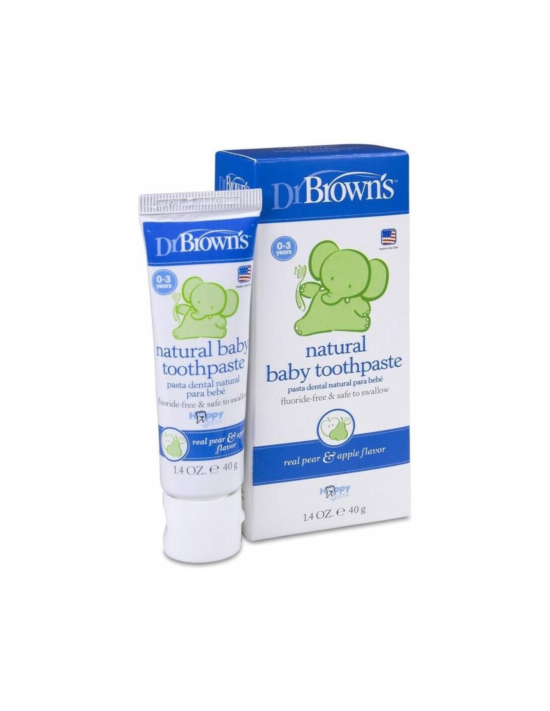 DR. BROWN´SSin fluoruro: perfecta para los padres que prefieren una opción sin fluoruro para limpiar los dientes y encías de sus pequeños. Segura si se traga: elaborada con ingredientes totalmente naturales y sin sabores o colores artificiales ni conservantes, esta pasta dental es segura si se ingiere. El excelente sabor de esta pasta dental ayuda a fomentar el uso y anima al niño a adquirir buenos hábitos de cepillado e higiene dental. Recomendada de 0 a 3 años.