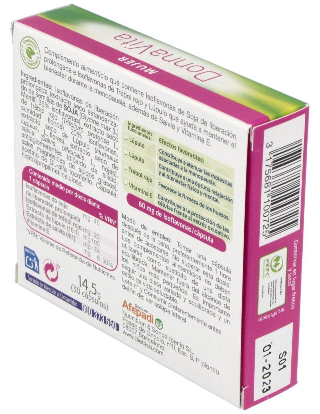 Dietisa donnavita es un complemento alimenticio que ayuda a alcanzar el bienestar de la mujer. Enriquecido a base de isoflavonas, salvia, lúpulo y vitamina e combate los síntomas de la menopausia.