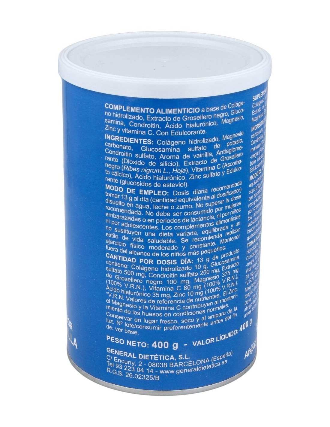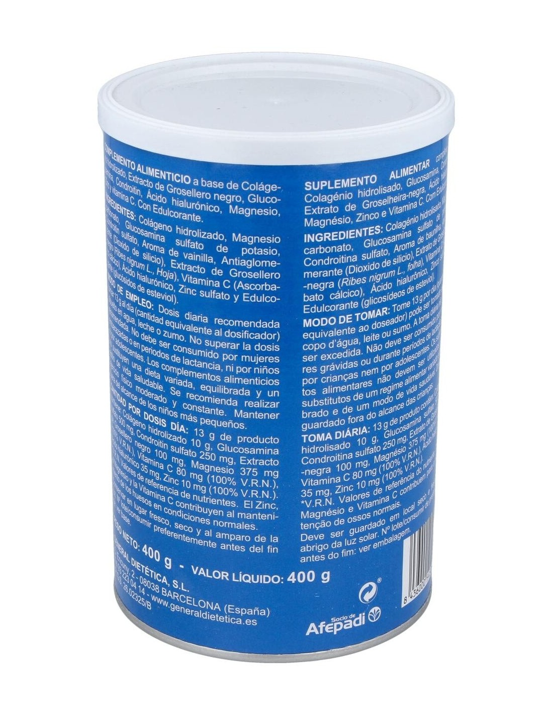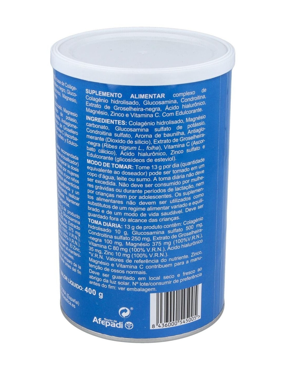 Fórmula de colágeno y otros nutrientes como la vitamina C, que contribuye a la formación de colágeno para el funcionamiento normal de los huesos, cartílagos y piel.