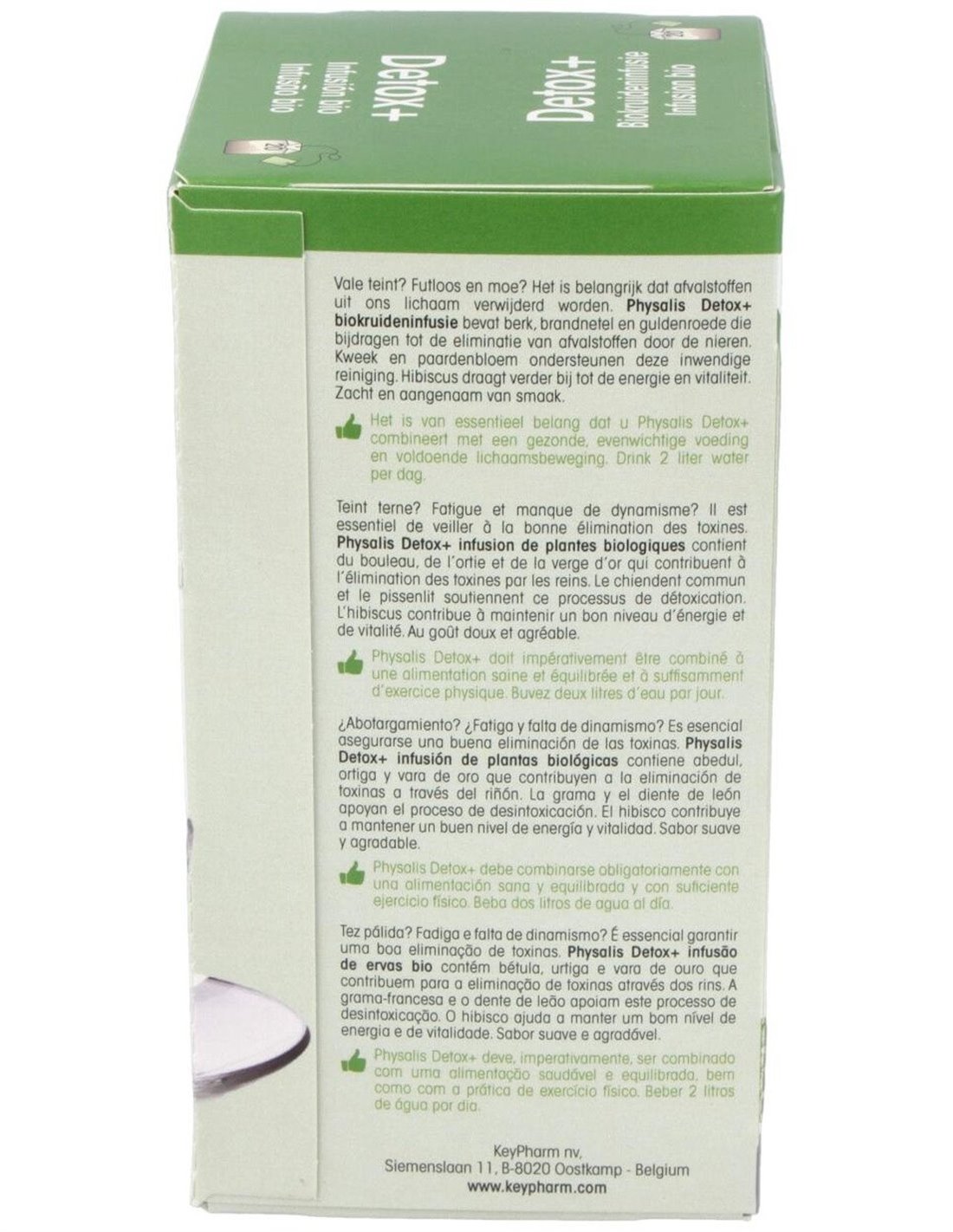 Infusión de plantas biológicas contiene abedul, ortiga y vara de oro que contribuyen a la eliminación de toxinas a través del riñón. La grama y el diente de león apoyan el proceso de desintoxicación. El hibisco contribuye a mantener un buen nivel de energía y vitalidad. Sabor suave y agradable.