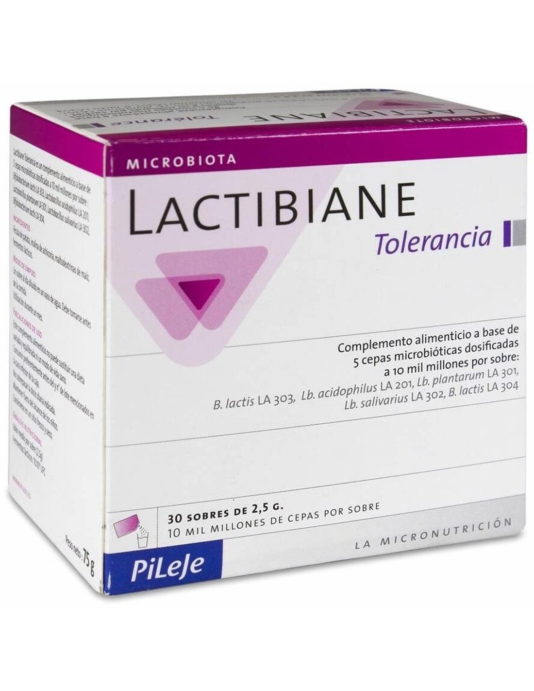 Lactibiane Tolérance te ayudará a mejorar la calidad de tu flora intestinal gracias a su formulación rica en cepas de fermentos probióticos. Estos probióticos han sido seleccionados por sus propiedades inmunomoduladoras, que ayudan a las bacterias beneficiosas de nuestro estómago a mejorar la asimilación digestiva. Este producto es muy recomendable para personas en situaciones inflamatorias, con hiperpermeabilidad intestinal, enfermedad de Crohn, intolerancia a la lactosa, celiaquía u otras alergias alimentarias.
