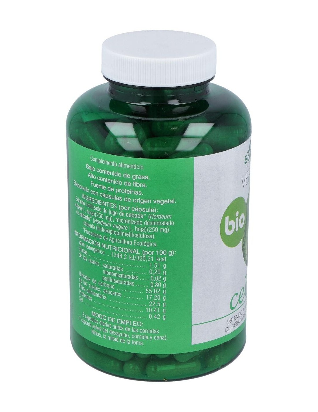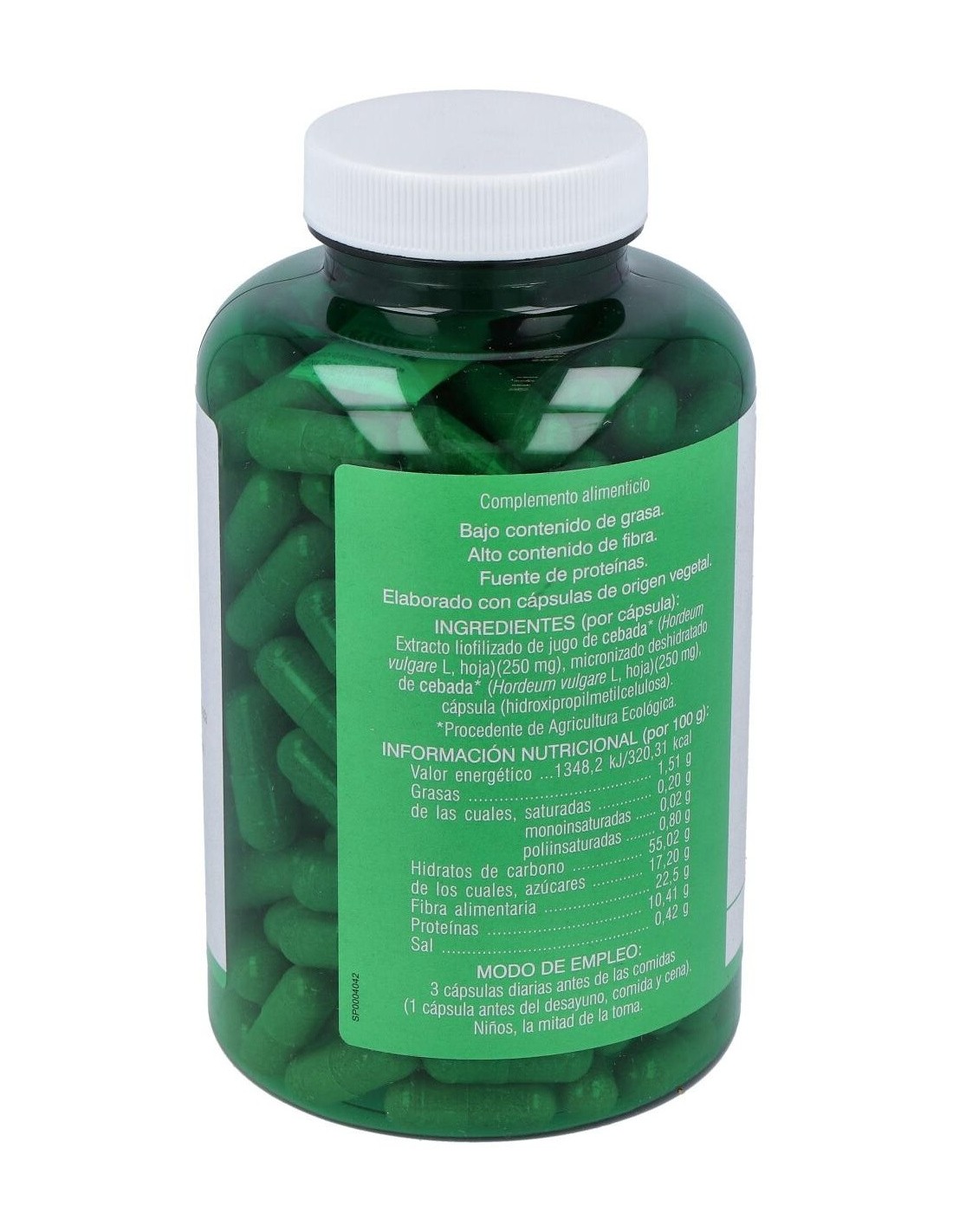 Por 1 cápsula: Extracto liofilizado de jugo de cebada* (hoja) (250 mg), Micronizado deshidratado de cebada* (hoja) (250 mg), Cápsula: hidroxipropilmetilcelulosa. (*) Procedente de la agricultura ecológica.